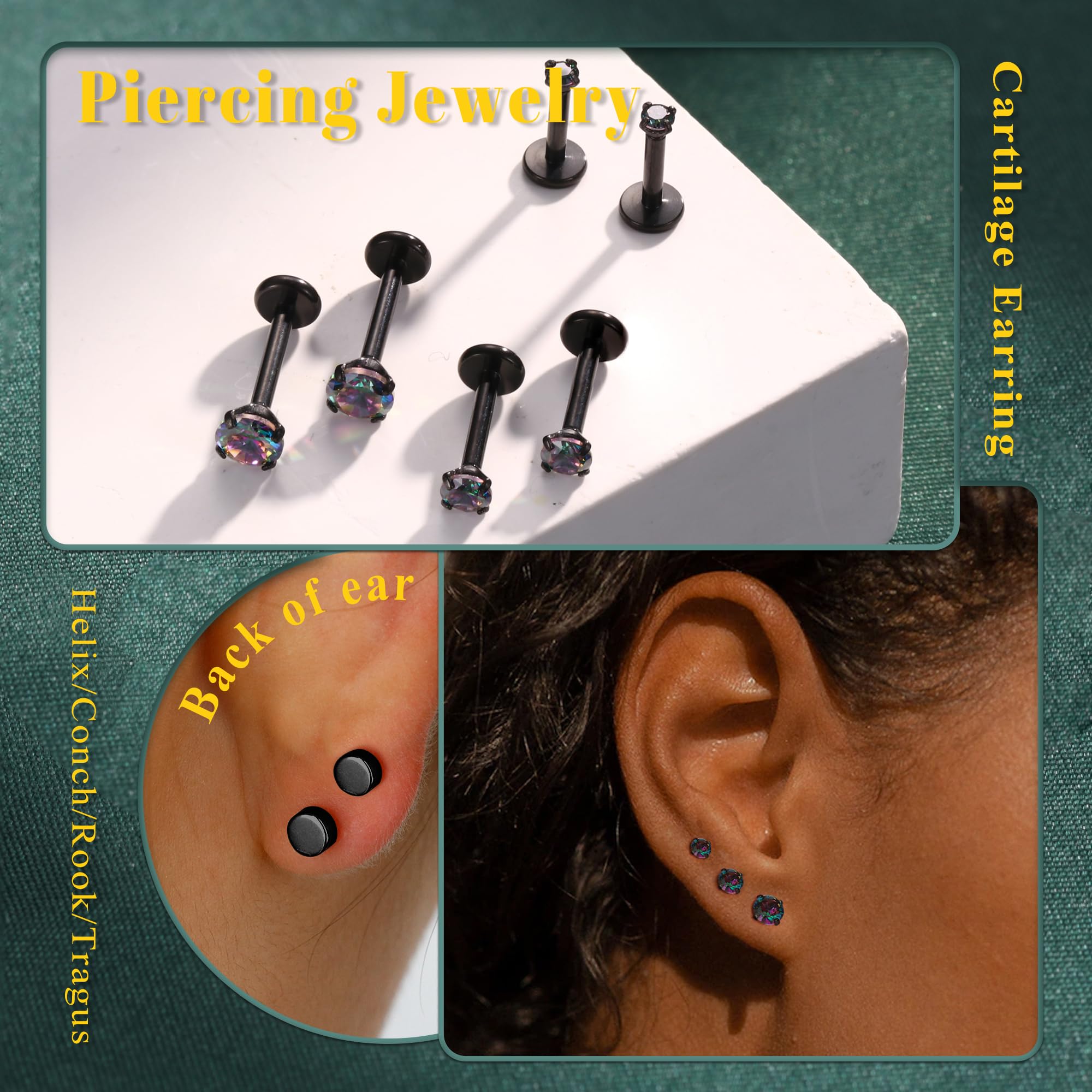 Multiple Versatile Piercing Earrings Set : Trendy flatback stud earrings stacks for women men , perfect for multiple piercings, such as cartilage earrings, helix piercing, tragus piercing, conch earrings piercing, nose rings, lip ring, labret stud, first hole, second hole, third hole, etc. Easily create charming looks, feel free to match with many stunning style
