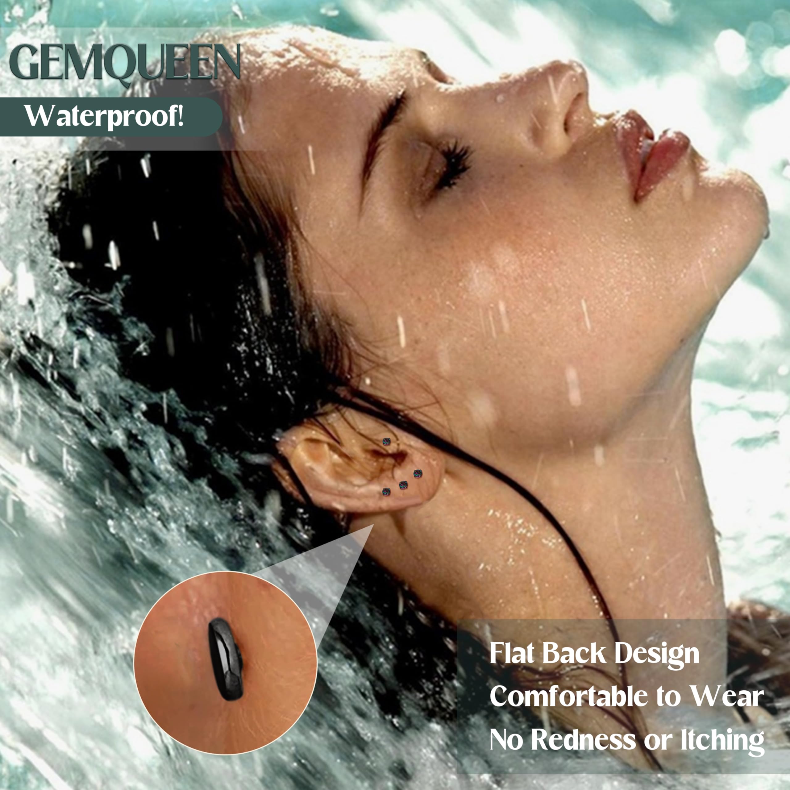 Comfy Flat Back stud earrings : GEMQUEEN Flat back earrings 3mm extended thread make them easy to fit at home, and the internally screw thread design is more stable than threadless piercing stud. The flat back provides a comfortable wear that won't irritate your skin, can be wear in sleep, shower. Whether you're talking on the phone, at the gym with headphones on, it is so comfy that you’ll forget you’ve even worn the surgical stainless steel earrings