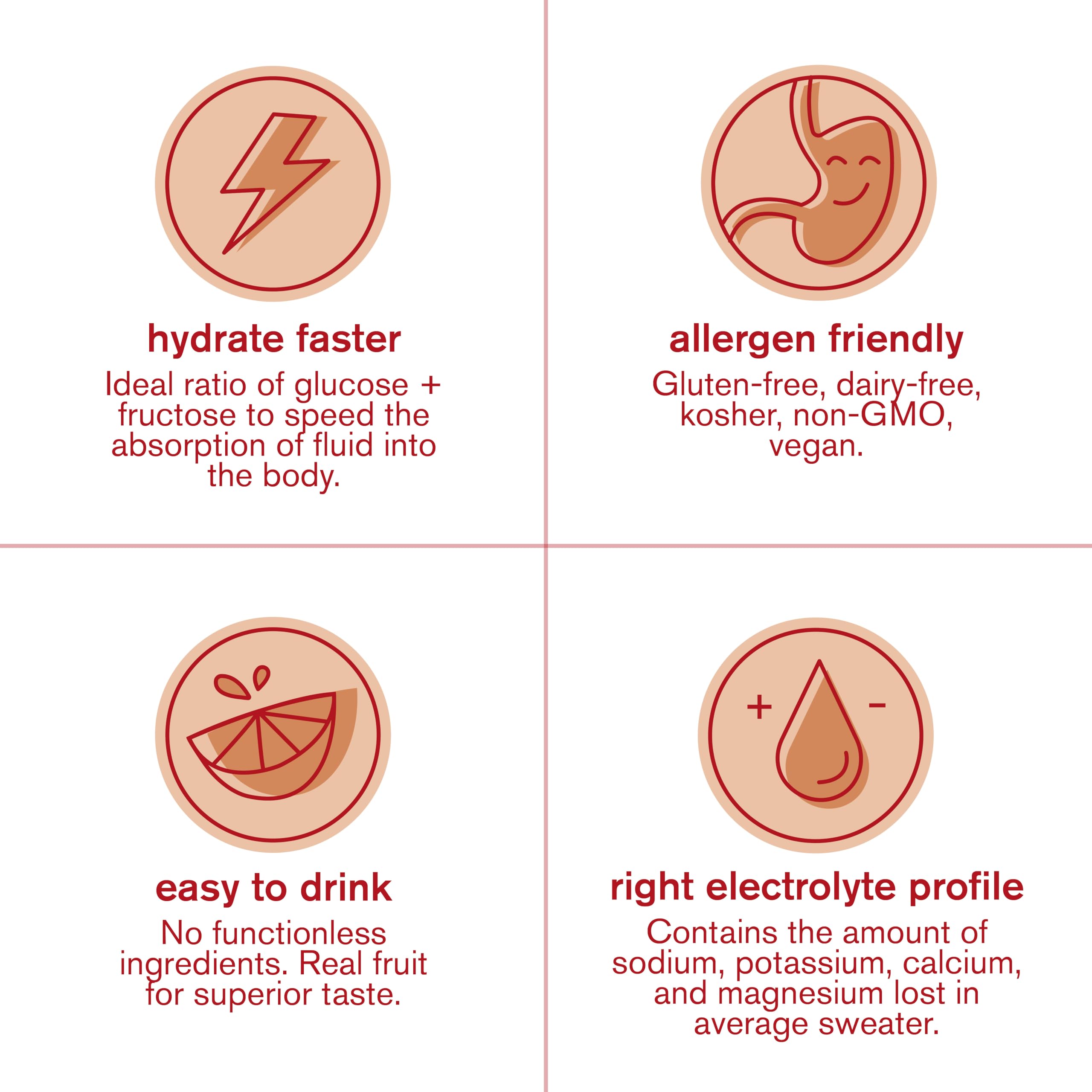 DEVELOPED FOR ATHLETES: An electrolyte profile to match what's lost in sweat, to rehydrate, and an optimized ratio of sodium & glucose for fast absorption and energy. Cycling, running, endurance or workout - perform better AND feel better.