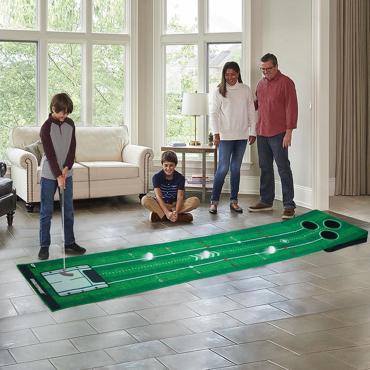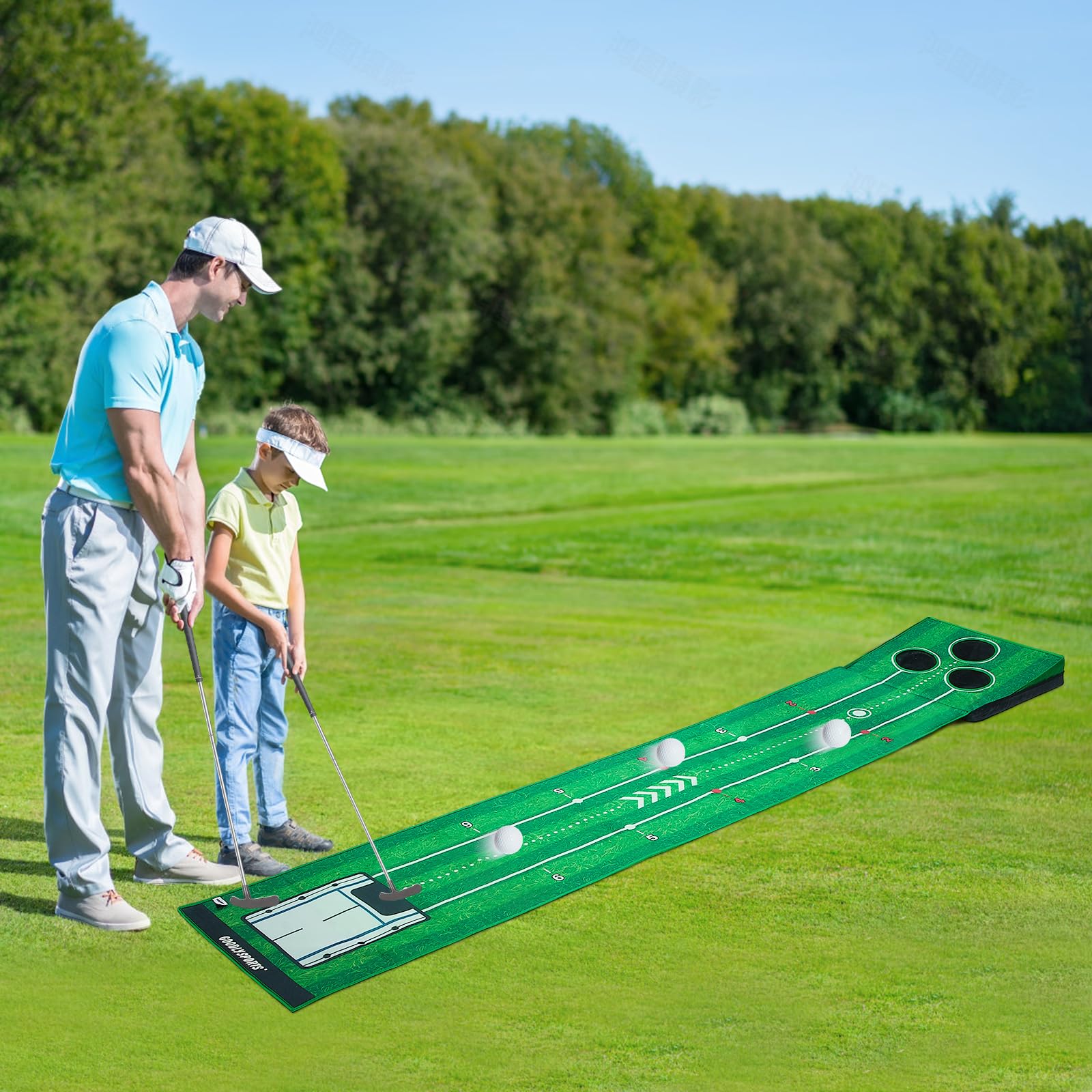 Portable Golf Putting Mat: Our putting matt for indoors is an ideal gift for golf lovers. The putting green can be used as indoor putting green, outdoor putting green. This portable golf putting mat is perfect backyard golf and ideal putting trainer