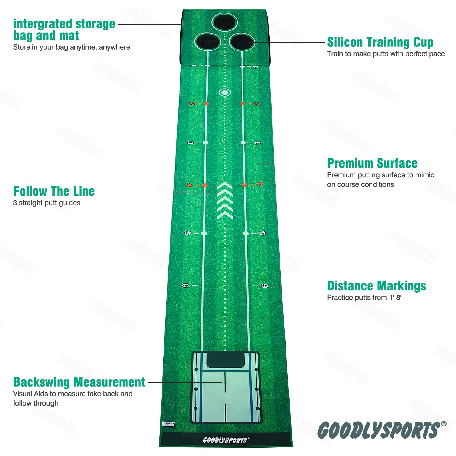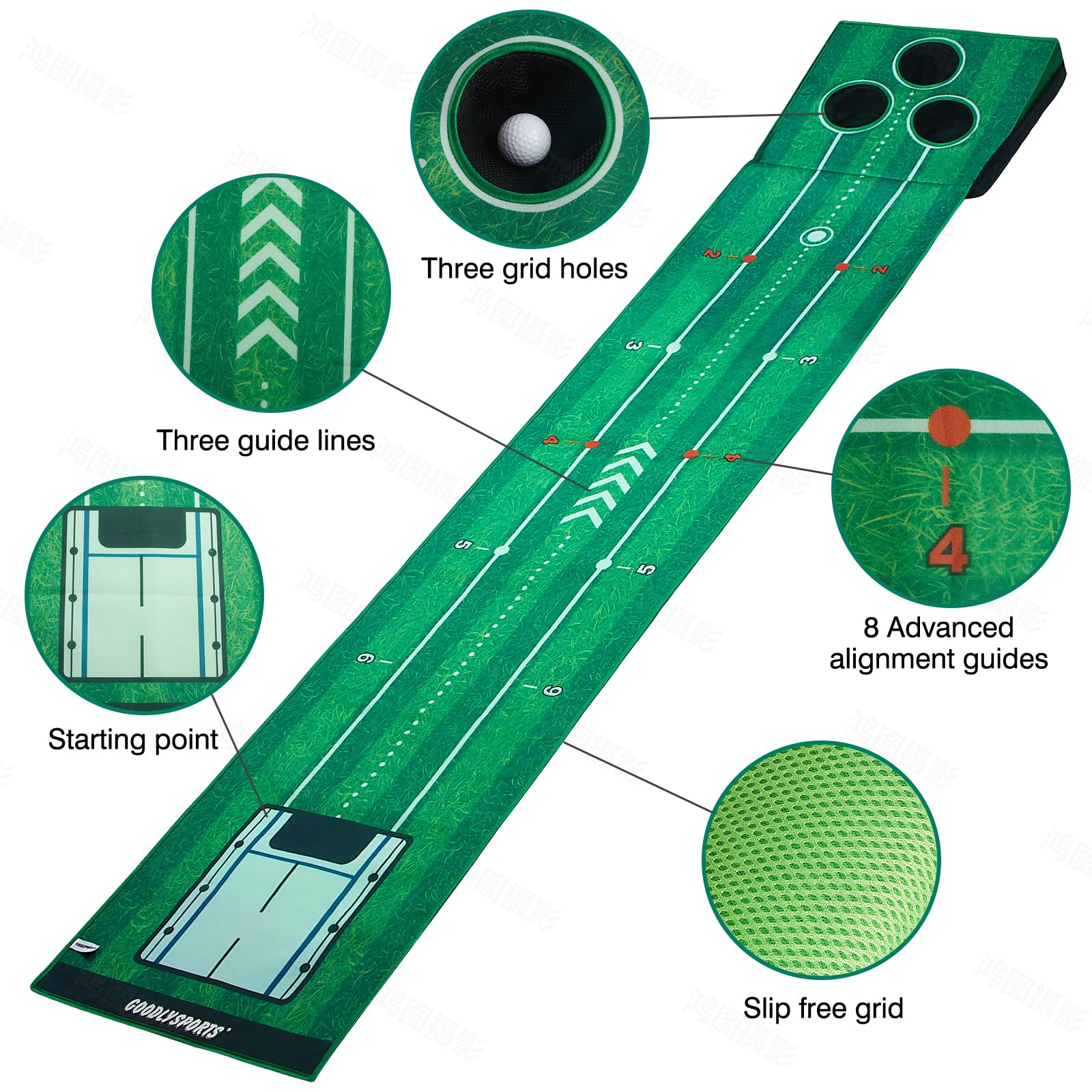 Practice Putting Mat: 90"x18" putting green is ideal golf putting mats to improve putting skill. The Indicator on the surface helps to control putting accuracy. This putting mat is golf putting mats practice indoor, indoor putting greens for home