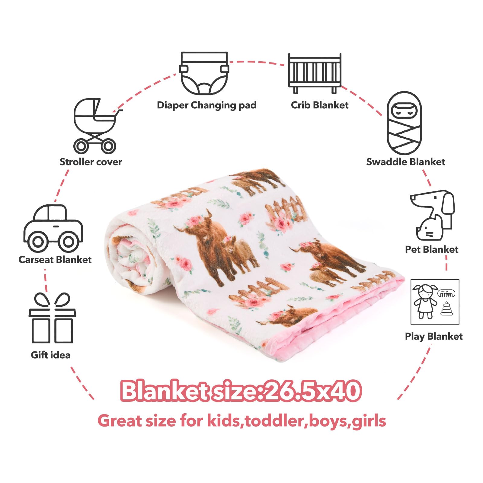 Highland Cow Lovey Baby Blanket: Our baby blankets are made of soft fabric that are more suitable for baby's delicate skin. Each toddler blanket features a double layer design with a dotted backing. Your baby will fall in love with its softness, ensuring a cozy night's sleep, night after night.