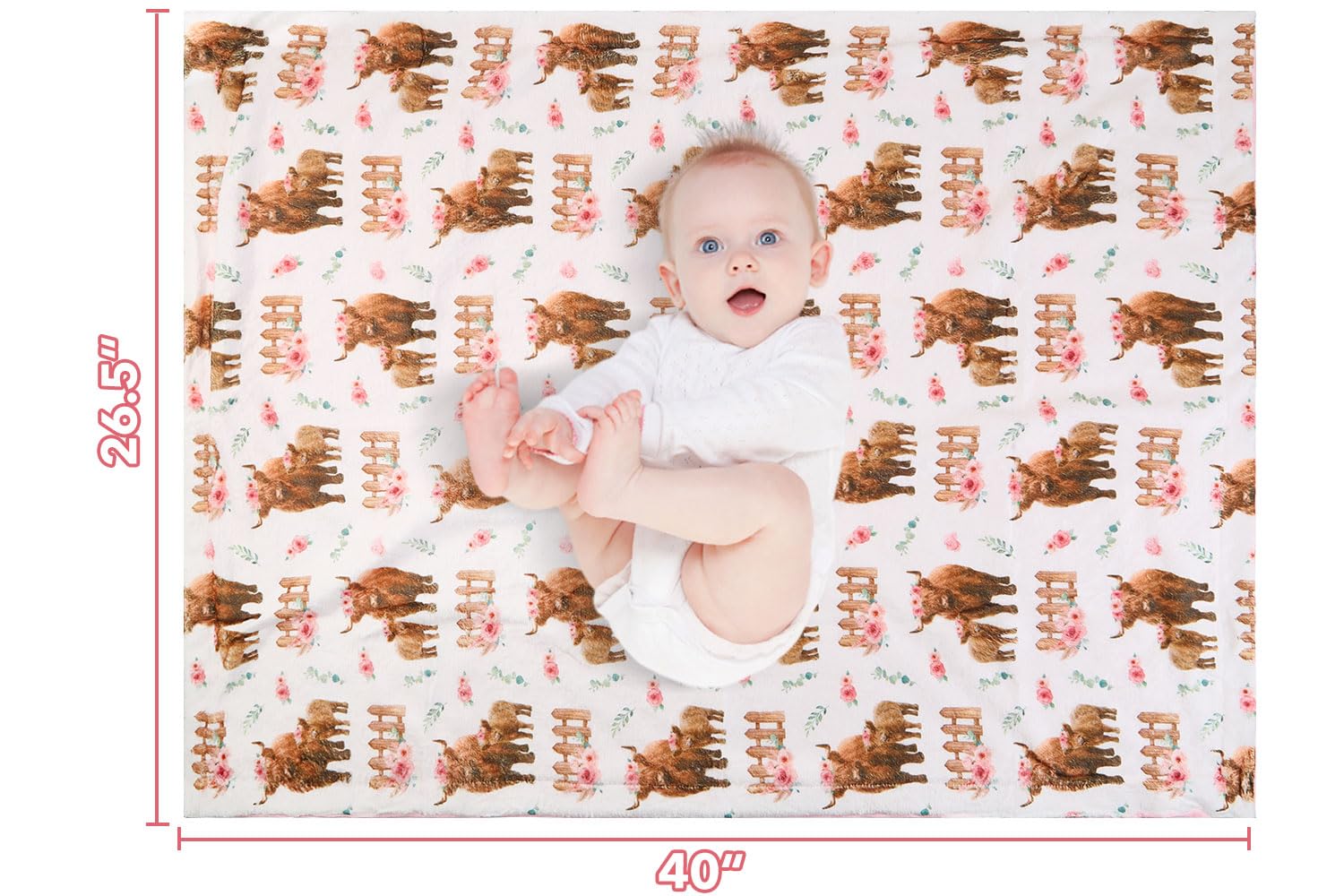 Highland Cow Lovey Baby Blanket for Boys Girls Soft Fleece Minky Blanket with Dotted Backing Double Layer Newborn Toddler Blankie for Nursery Stroller Crib Gift to Son Nephew Grandson 26.5 * 40 Inches