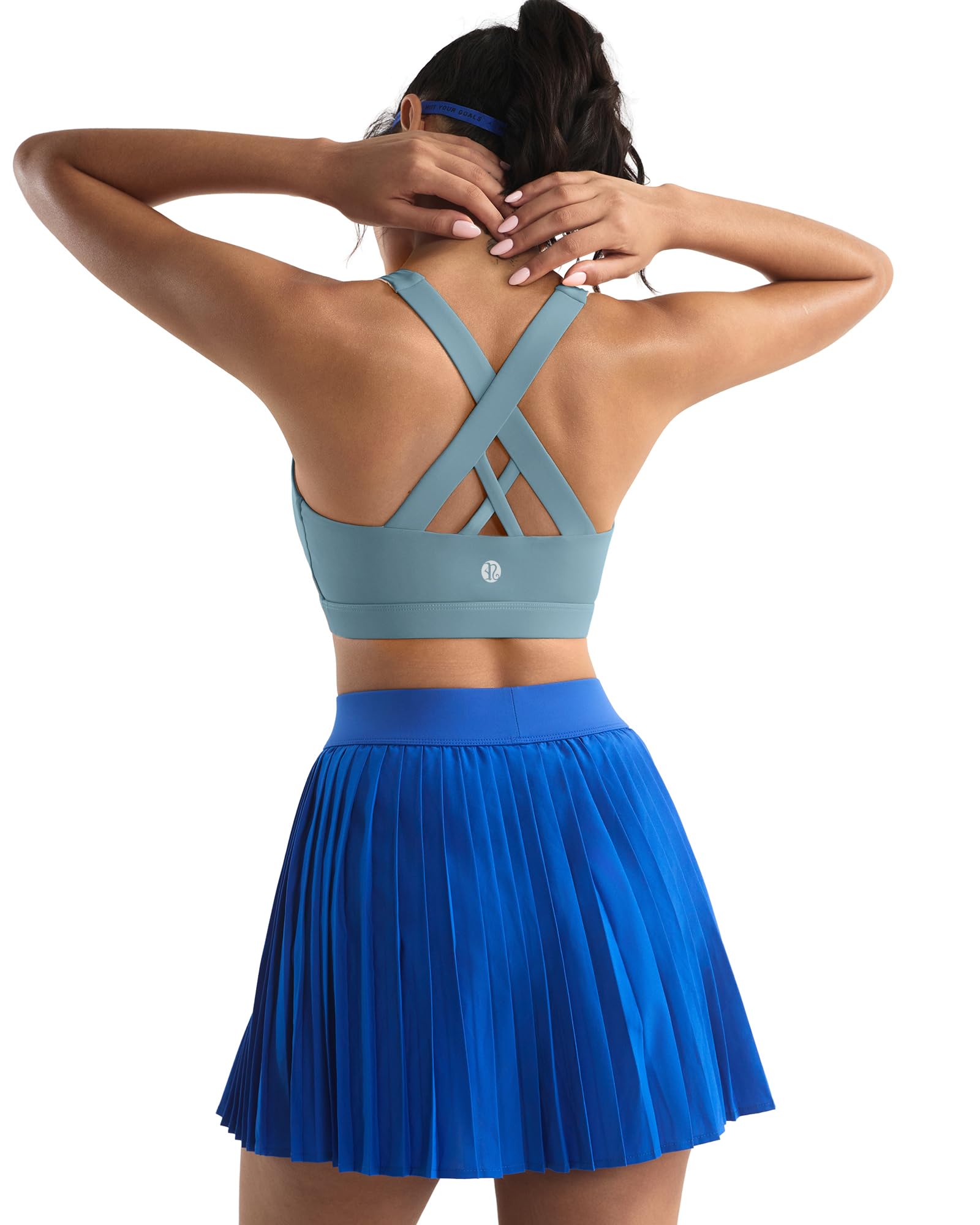 UNIQUE DESIGN:Criss Criss-cross back detailing gives the V-neck Bra its signature style. But it doesn't just look good, it's hard working. Heat transfer tech, a lined shelf bra, and the sports bra for women wrapped in durably soft performance stretch fabric keep you comfy and supported.The cotton-like meterial, soft and comfortable to wear.Crisscross back straps let you twist with ease, Sexy Crossback design offers a extra back support, fashionable and stylish, Stretch Fit Sports Yoga Gym Bra.