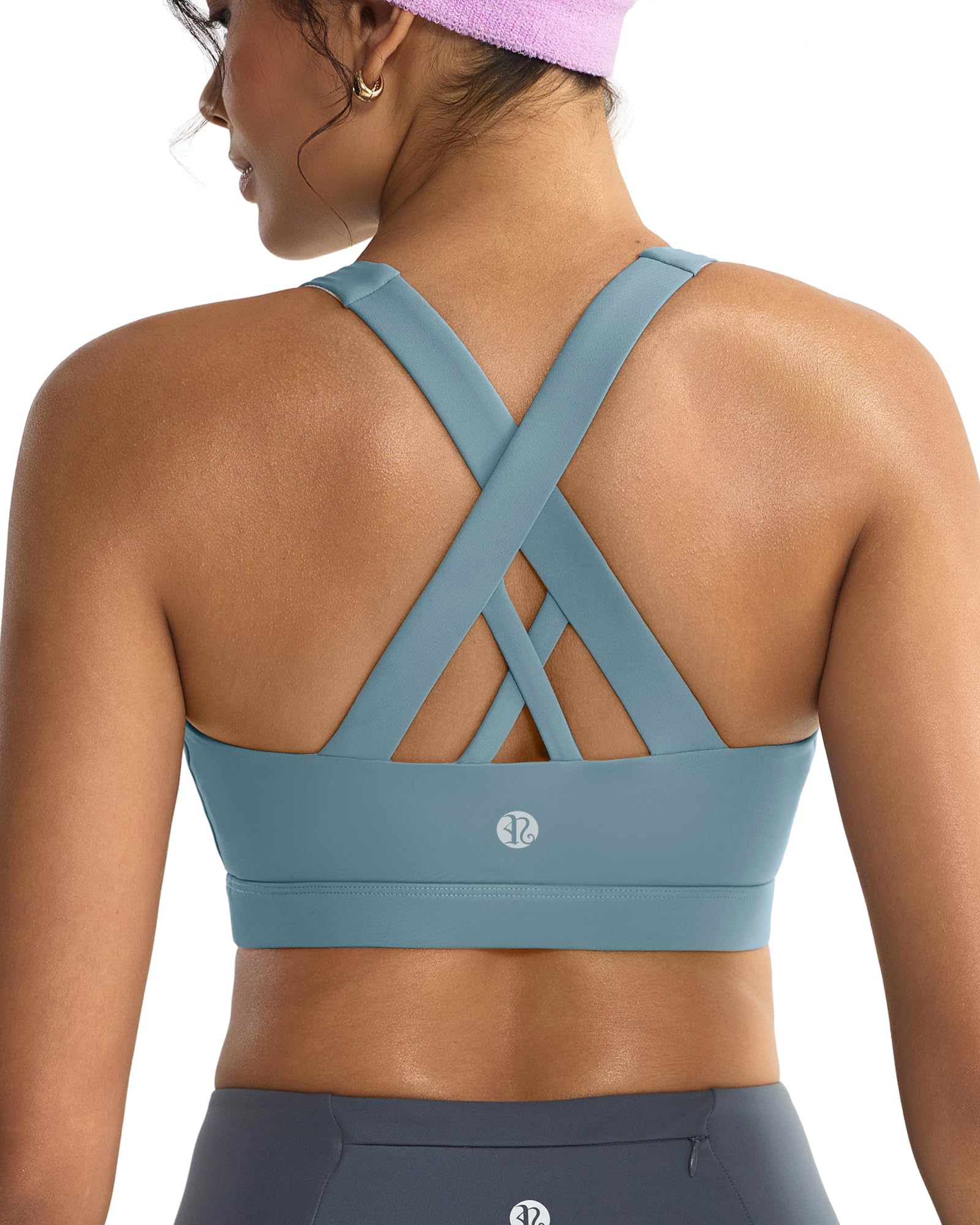 WHY WE MADE THIS:Need a sports bra that does it all? Look no further! This sweat-wicking cross-strap bra gives you the coverage and support you need for yoga, run, and the gym—without restricting your movement or breath. fabric has added lycra that allows the bra to stretch with you and retain its shape over time. Slip in optional, removable cups for full coverage—if you want it. This bra is intended to provide medium support for great shape retention, long-lasting comfort.
