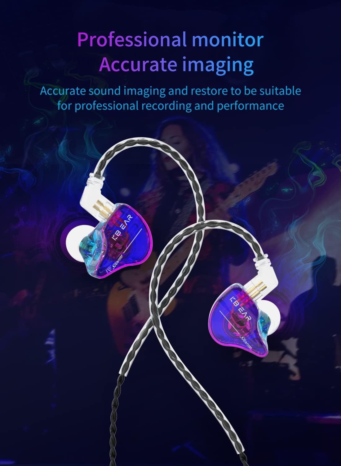 Skin-Friendly Material: The Kbear Storm wired earbuds cavity is highly transparent and skin-friendly, to make the cavity with excellent touching and texture. Even if you wear it for a long time, you will not feel foreign body sensation