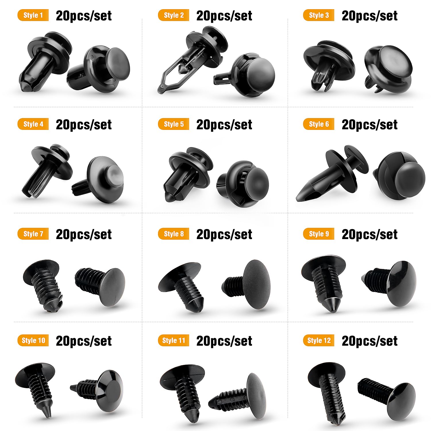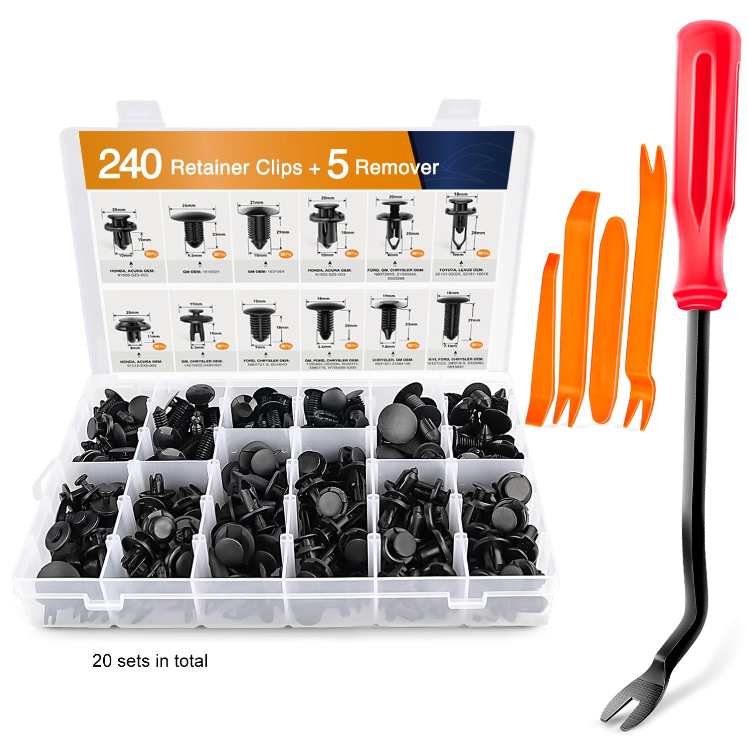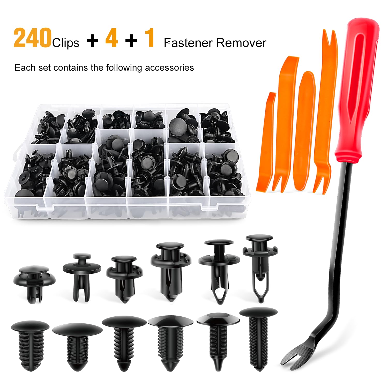 SAVE TIME AND MONEY - Each set includes 240PCS automotive push type retainer kit so you no need to go to a auto parts store to look for different fasteners. You can remove the old clips using free fastener remover