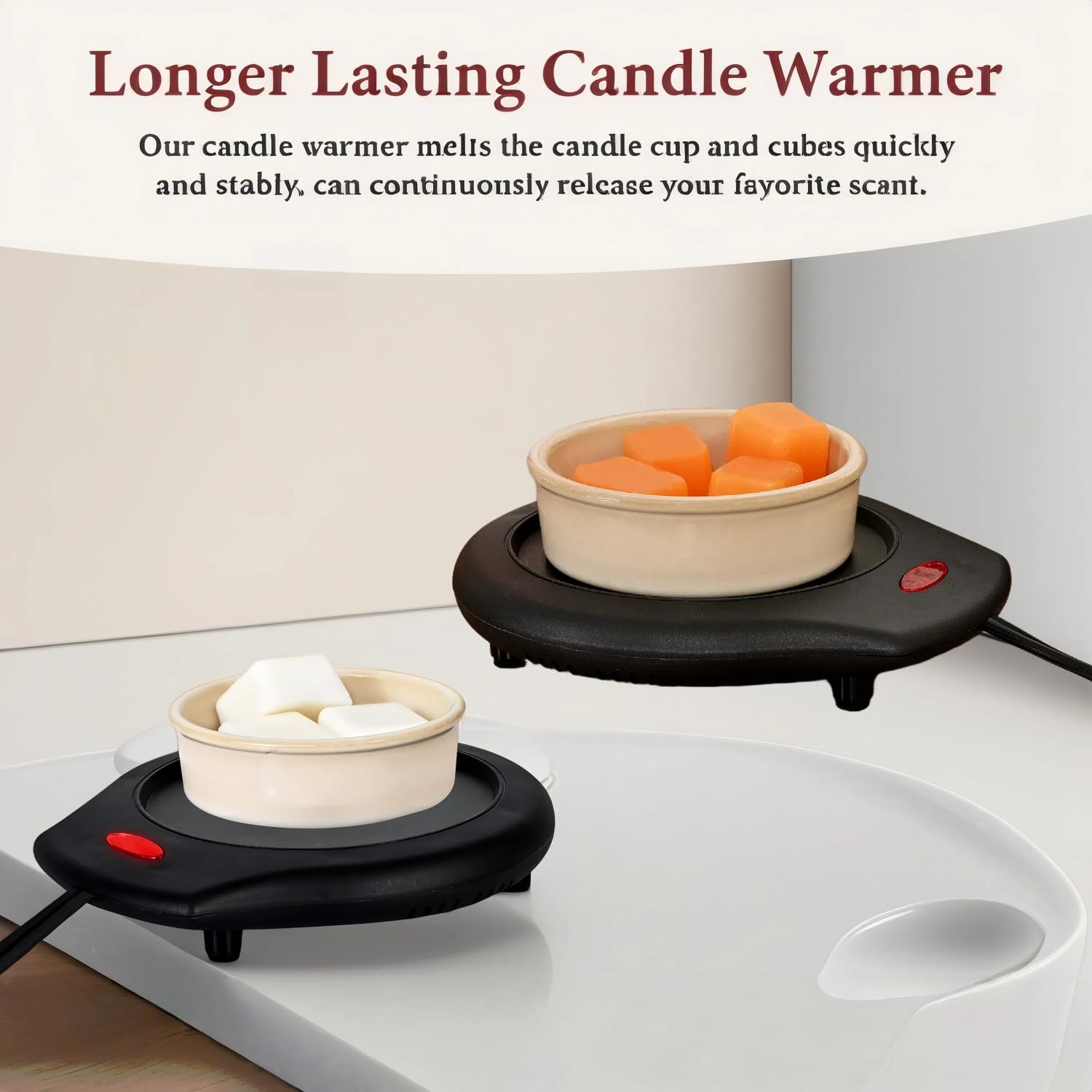 【Portable,Lightweight & Multiple Uses】:3.5 inch diameter,weighs only 0.33 lbs.fit in home,kitchen and office to heat coffee,tea,milk,soup,cocoa, wax cubes and candles.(Note:It is recommended to use flat cups and containers for more uniform heating)