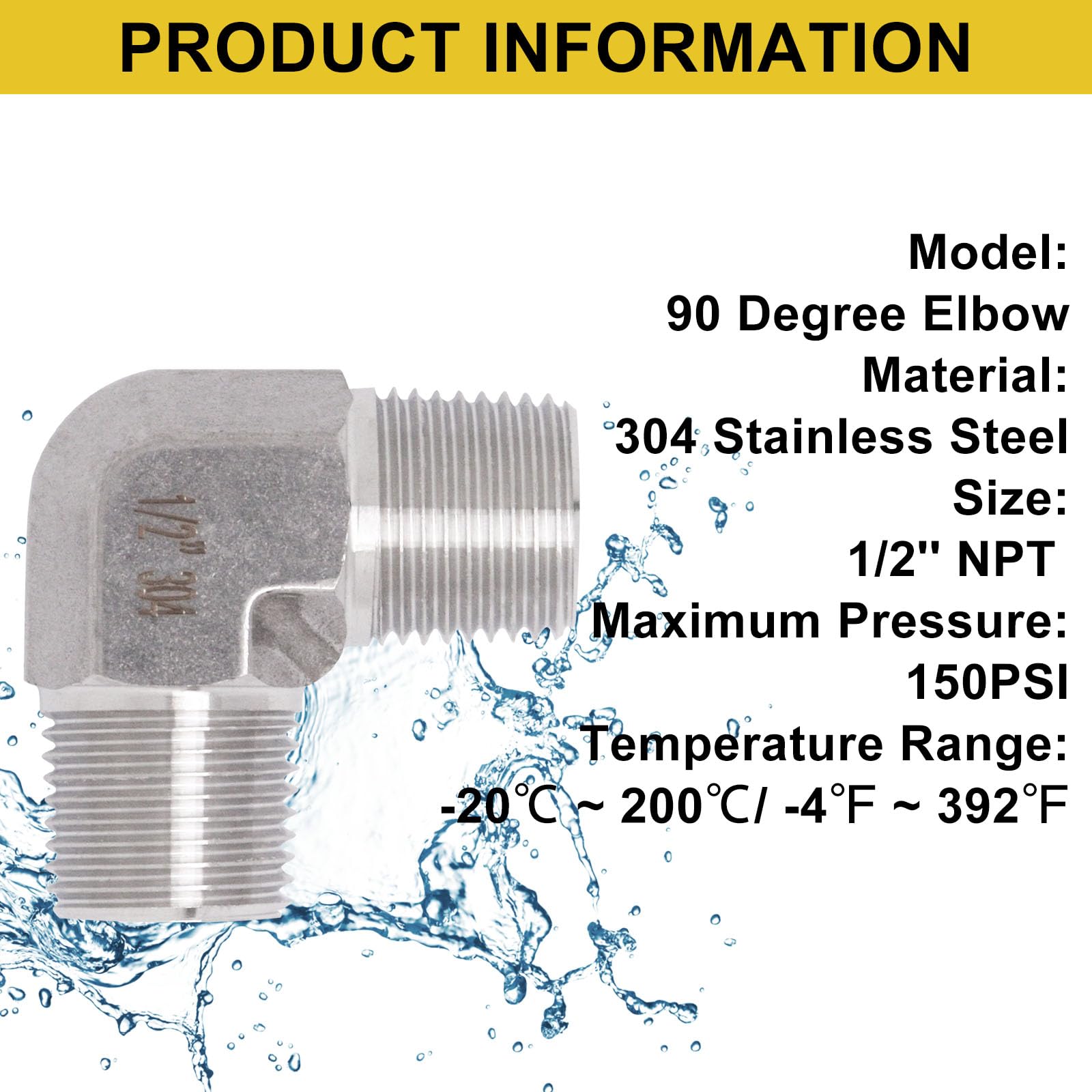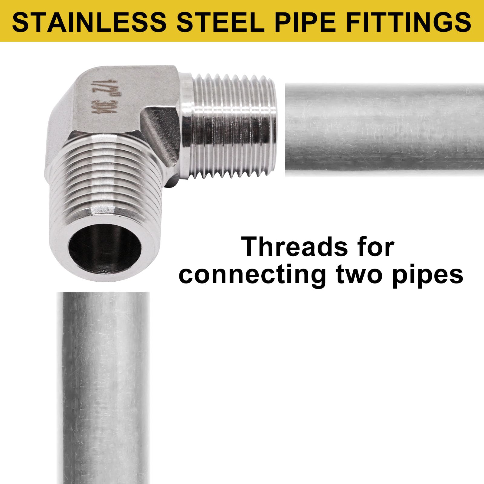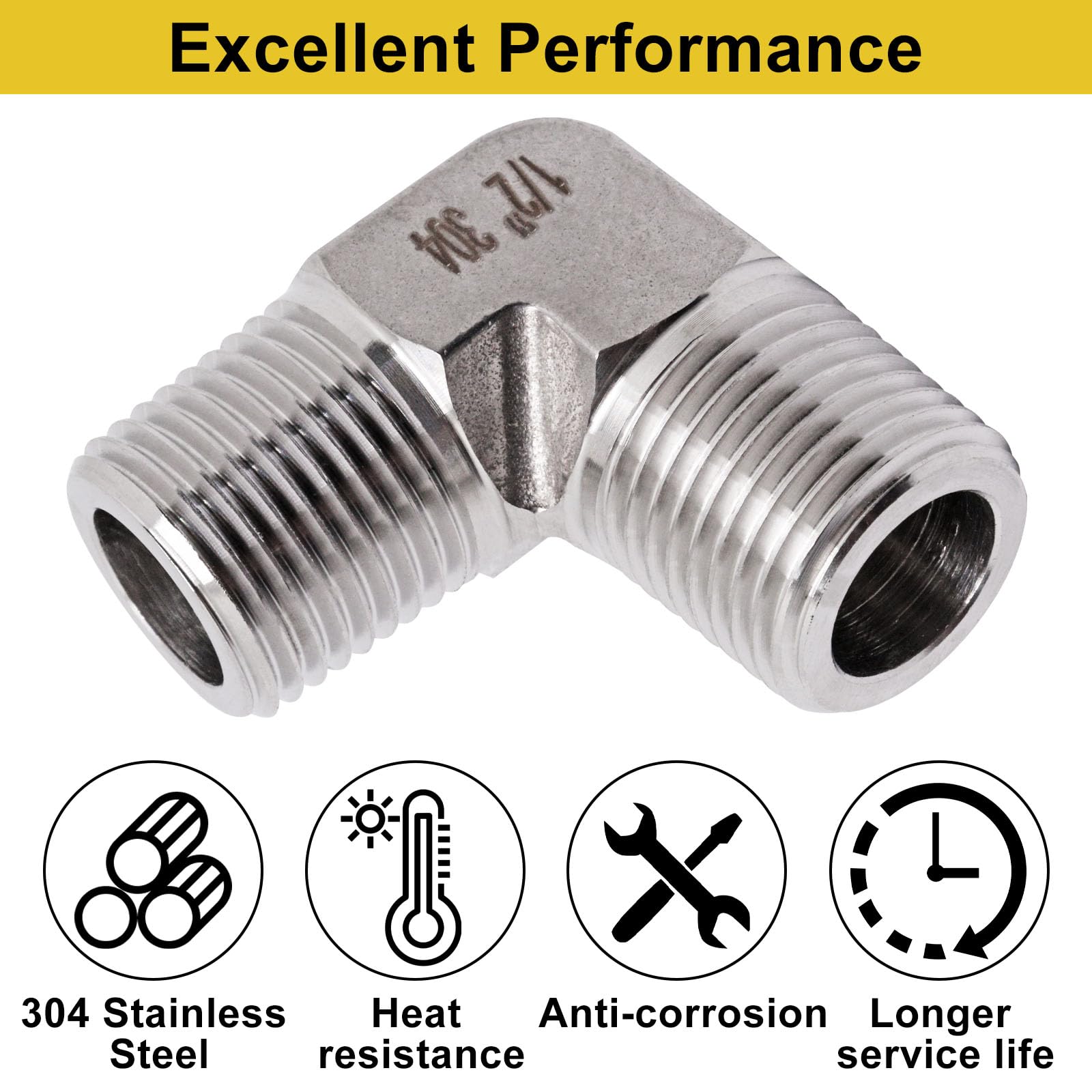 Premium Material: The male elbow is made of high-quality 304 stainless steel, which is hard and will not rust, strong and resistant to temperature. Forged 304 stainless steel structure and the smooth thread design make the accessories better engage with the object to enhance the fixation