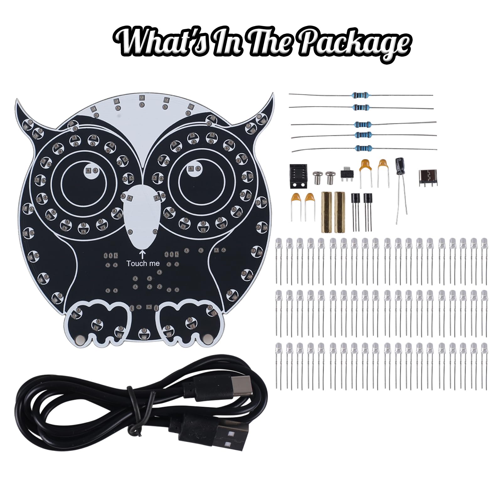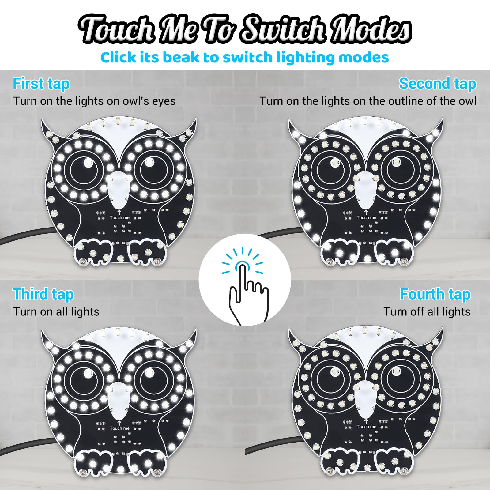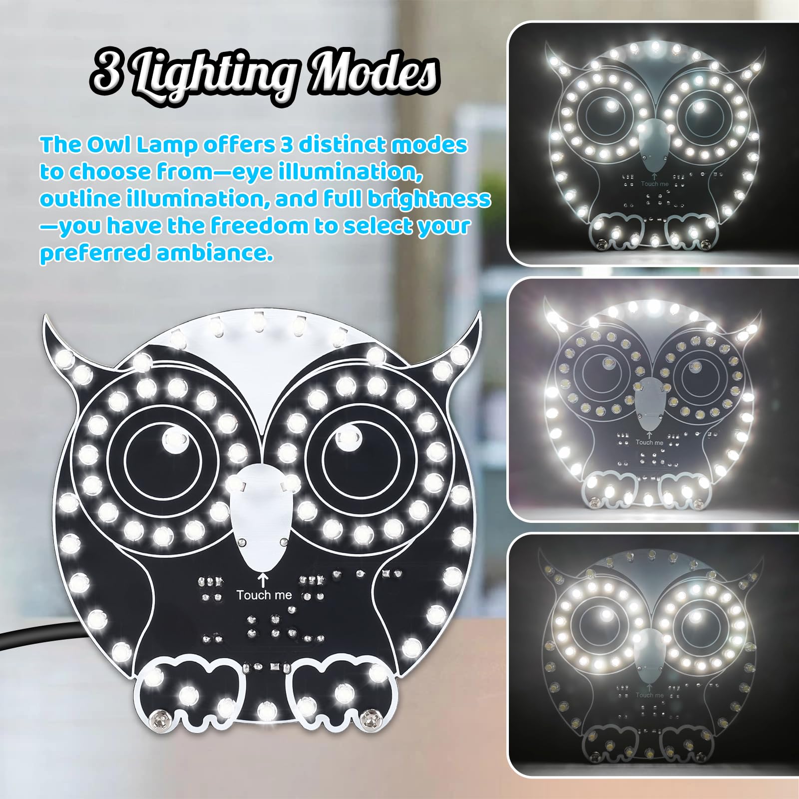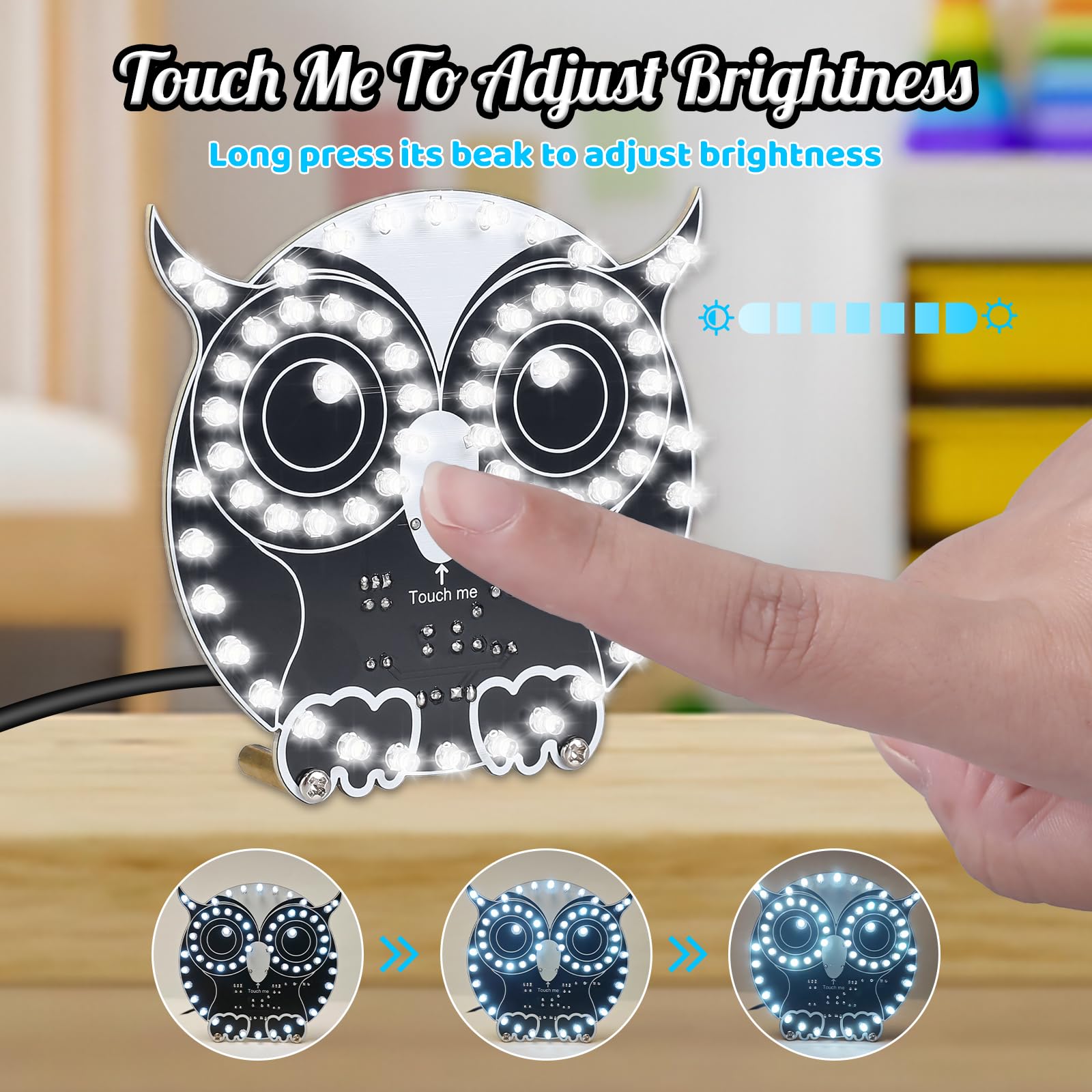 ICSTATION Soldering Learning Kit, Touch Control Owl Light Soldering Project With 3 Light Modes Brightness Adjustment Owl Shaped LED DIY Kit for Beginners School Students Education Halloween Present