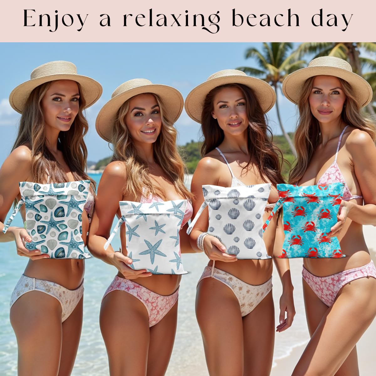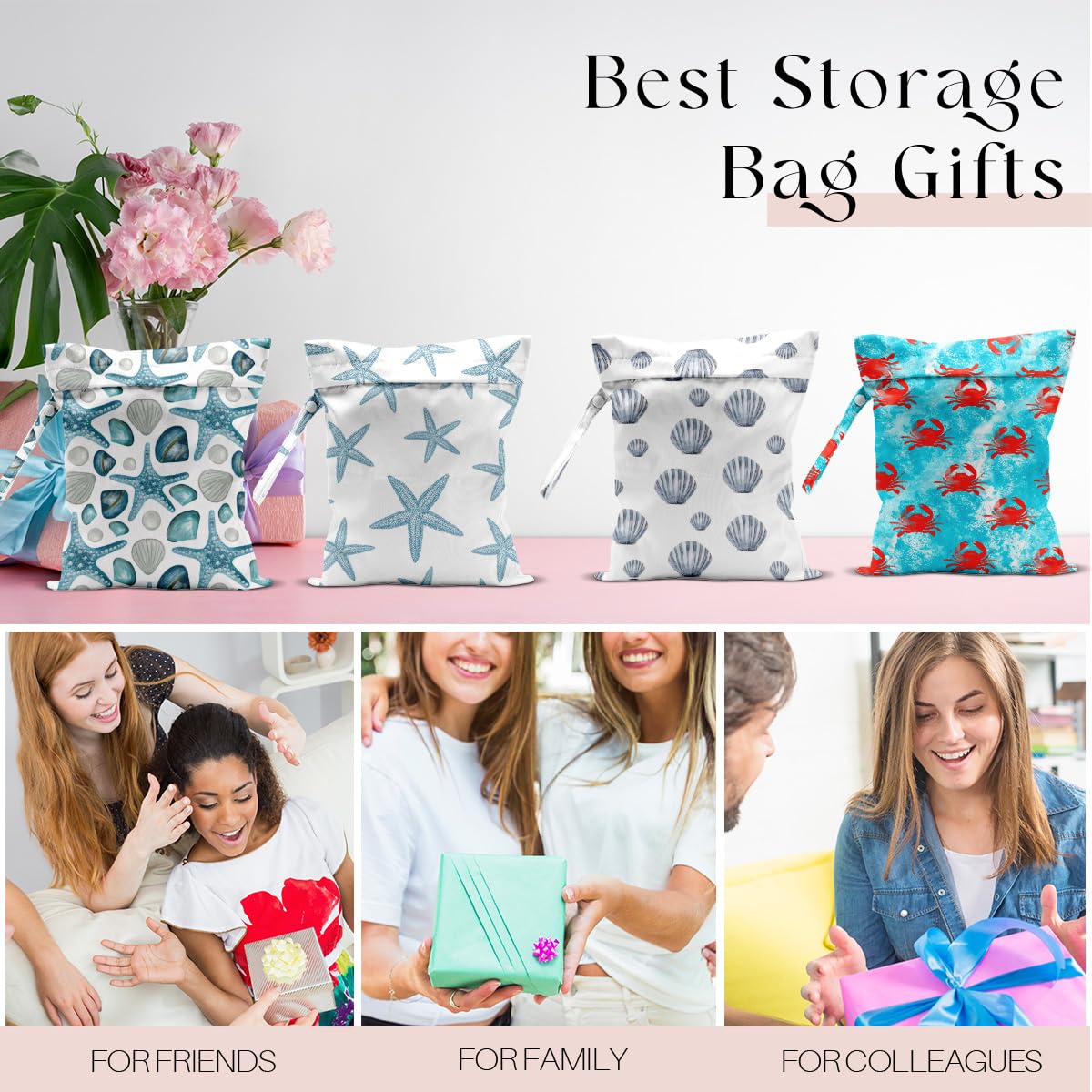 πŸ’• ENOUGH SPACE –You will get 4 wet bags, the size is approx.: 10.2" x 12.6". Comes with a handle so that you can easily pick the bag up or hang it. Each can hold approximately 5 cloth diapers. They are light weight, easy to carry, swimsuit bag, Beach essentials.