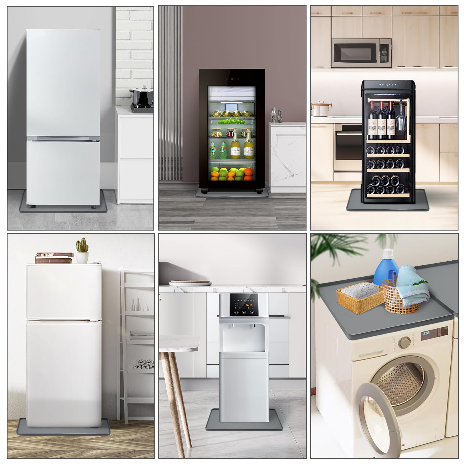 Perfect Size: 25.6'' x 23.6'' x 0.6''. The mat is suitable for most small refrigerator, washer, dryer, mini fridge,freezer, wine cooler, etc. Please measure the space you need to place before purchasing to make sure the size will fit perfectly!