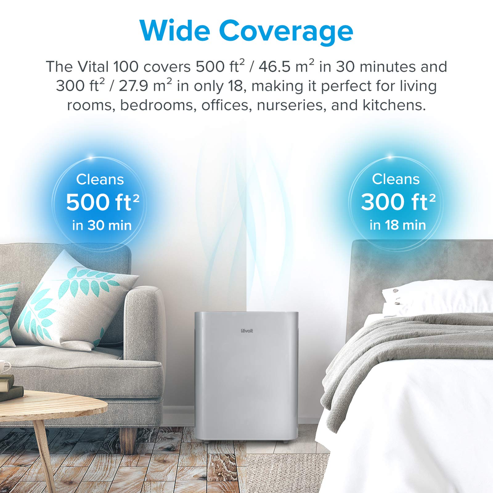 ππππππ ππ ππππ πππππππ: With a CADR of 130 CFM / 221 m3/h, the Vital 100 is perfect for living rooms, bedrooms, and kitchens. It can cover 300 ftΒ² / 28 mΒ² in only 18 minutes. (Only products over 6 pounds can be equipped with such powerful motors that optimize the air cleaning performance).Voltage: AC 120V, 60Hz