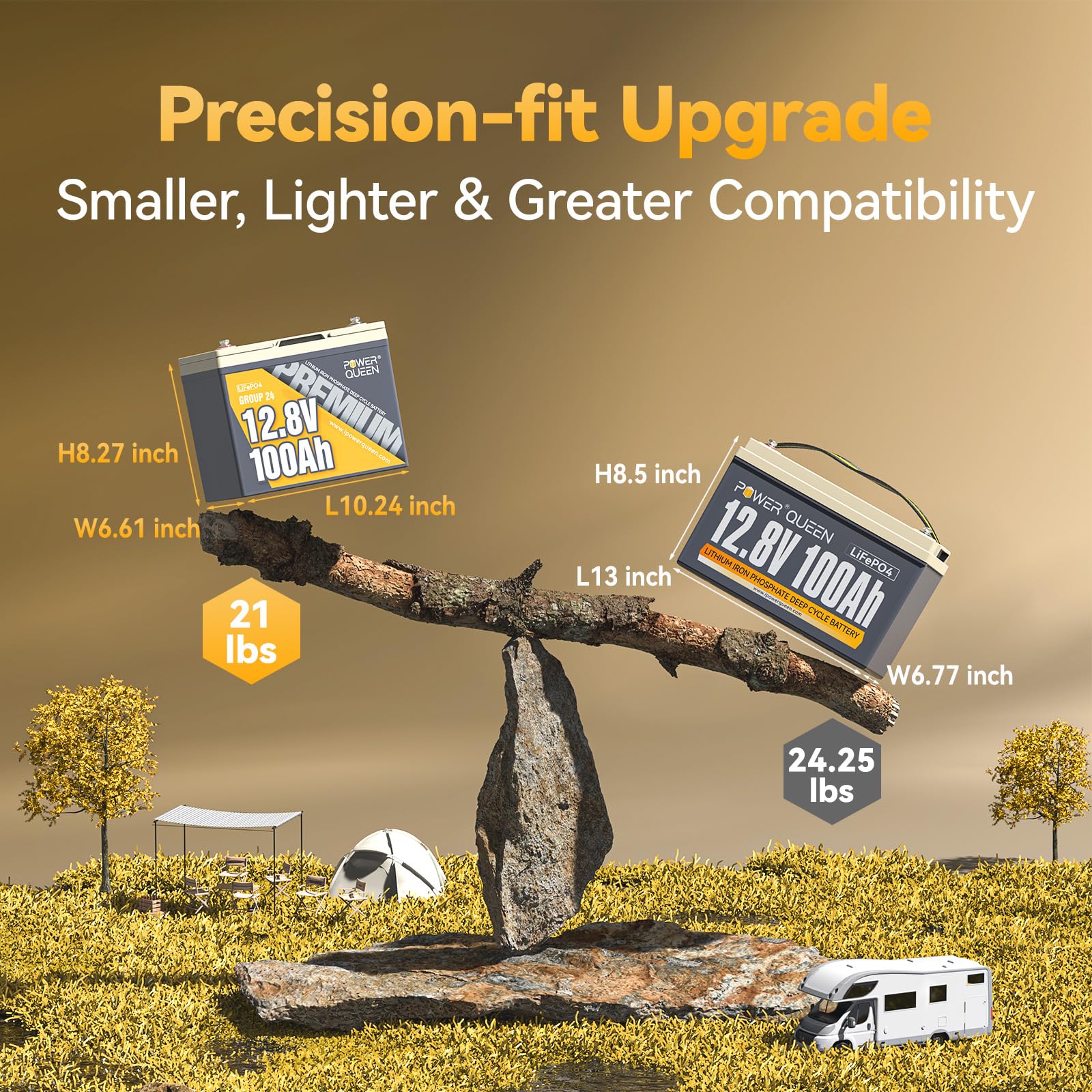 【Effortless Upgrade to Group 24 Size】The Power Queen 12V100Ah Premium battery is meticulously crafted to meet the BCI standard minimum size for Group24 batteries. Upgrading from lead-acid to lithium has never been smoother—simply replace your Group24 battery without the hassle of modifying your existing electrical system or wiring. Enjoy a faster and more straightforward transition to superior power