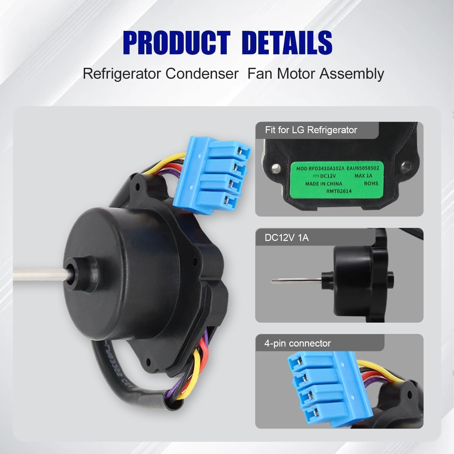 【Part number 】EAU65058502 RFD3410A102A EAU64843805 EAU65058501 Refrigerator Condenser Fan Motor Replace AP7178309 PS16662422 EAP16662422 .