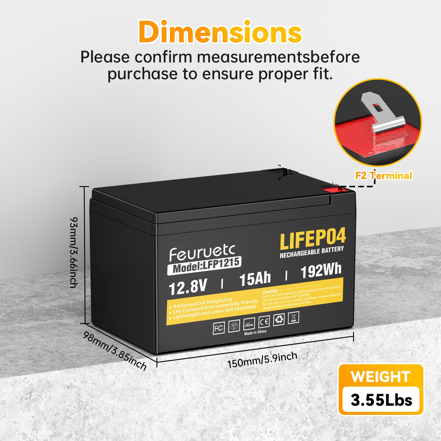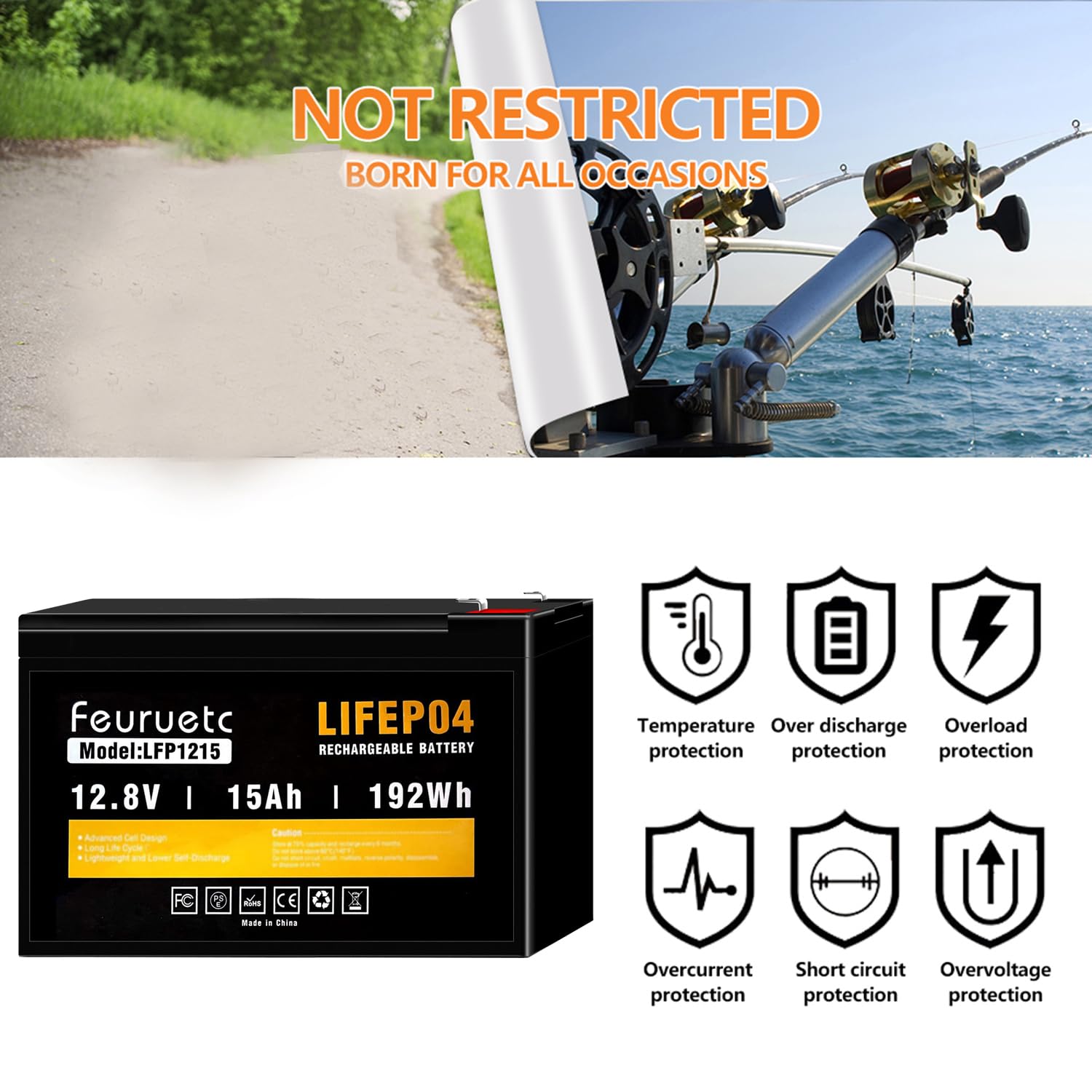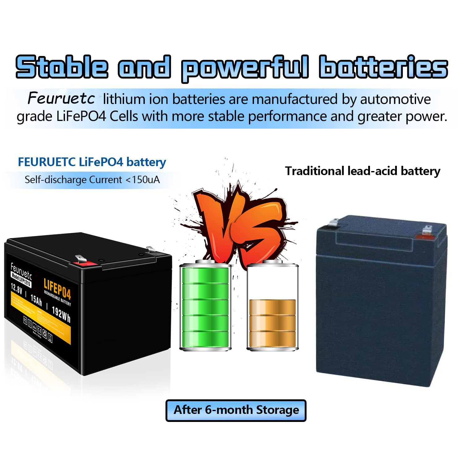 🏆[The service life is long]:12 volt 15ah battery have a long service life. They can provide over 4000 charge-discharge cycles, making them more durable and reliable.Feuruetc LiFePO4 a 10-year lifetime compared to 200~500 cycles & a 3-year lifetime in lead acid battery