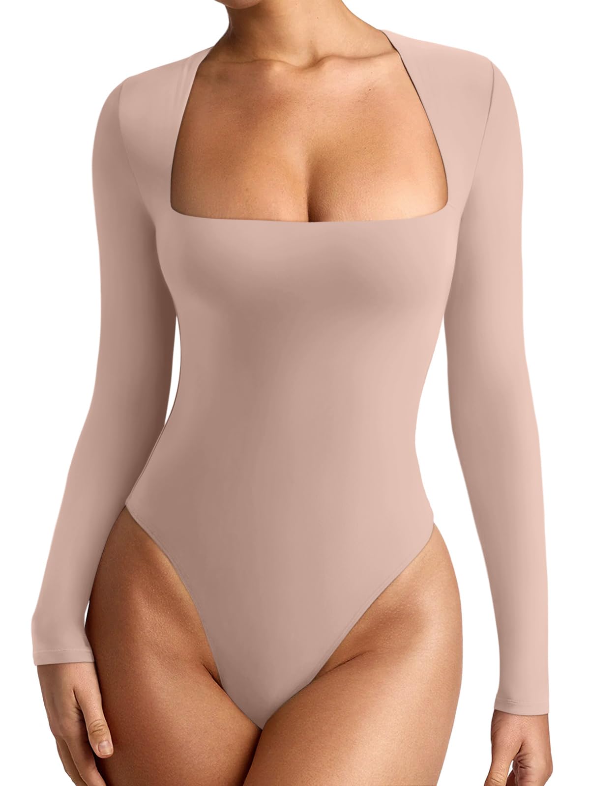 πΈMaterial: 75%Polyester +25%Spandex. Buttery feeling, double lined, not see through, super soft, breathable, stretchy, compression fit. This long sleeve bodysuit shapes your figure and accentuates all the right places. WYSIWYG!