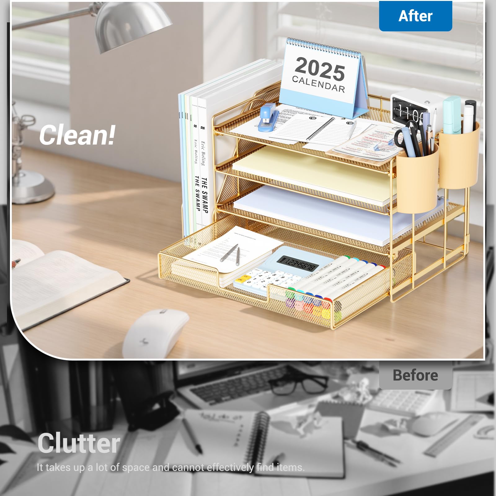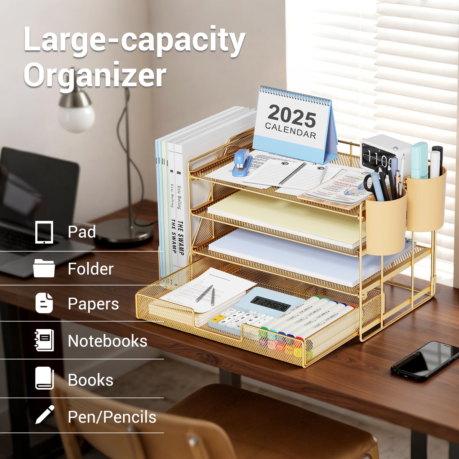 OPNICE Desk Organizers and Accessories, Desk Accessories & Workspace Organizers for Office Supplies, File Organizer Desk Drawer Organizer with 2 Pen Holders, 4 Tier Paper Organizer for Desk