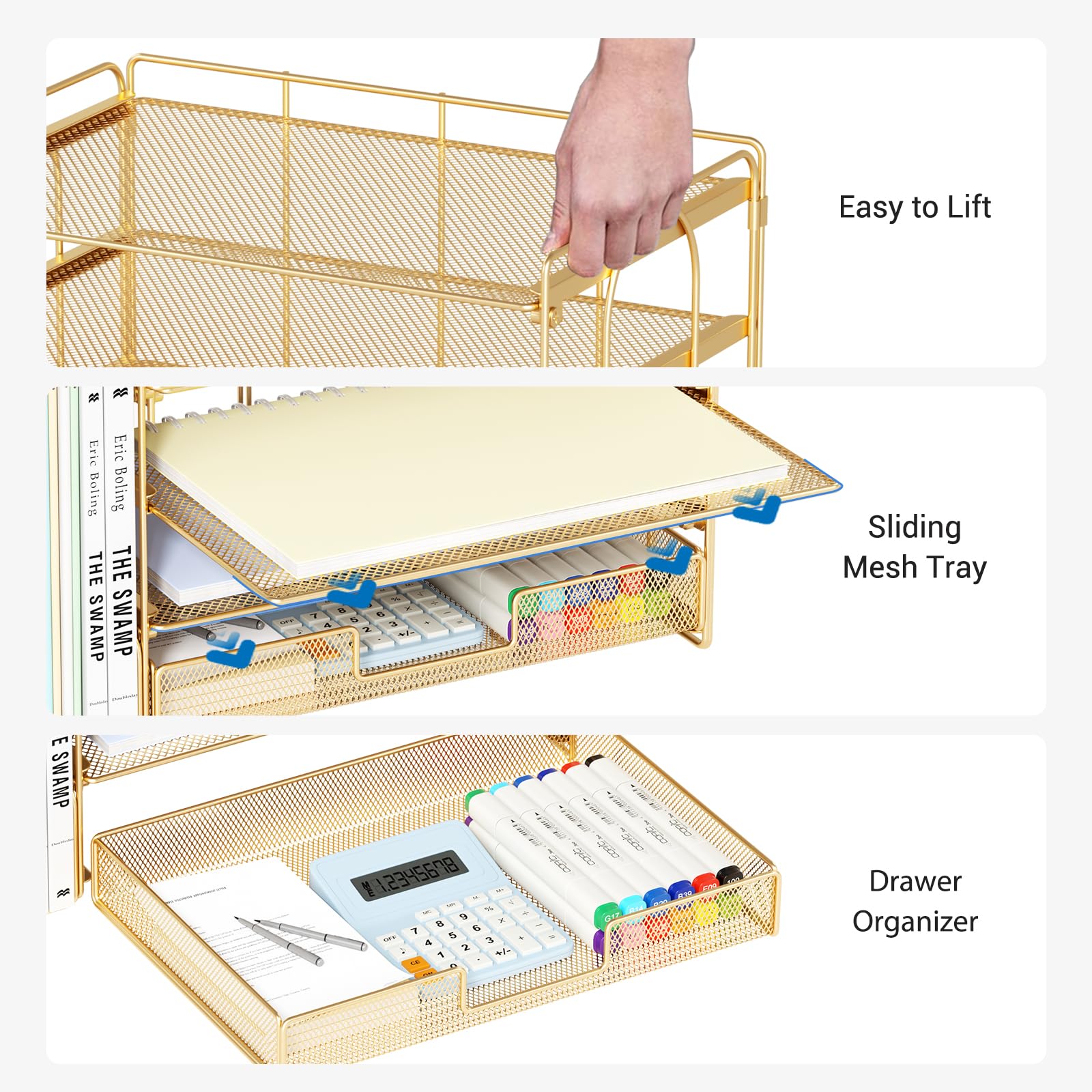 🎁【Premium Quality】Crafted from high-quality industrial-strength steel wire mesh and reinforced with a solid steel frame, our desk file organizer is built to last. You can trust that it will withstand the test of time and keep your workspace organized for years to come