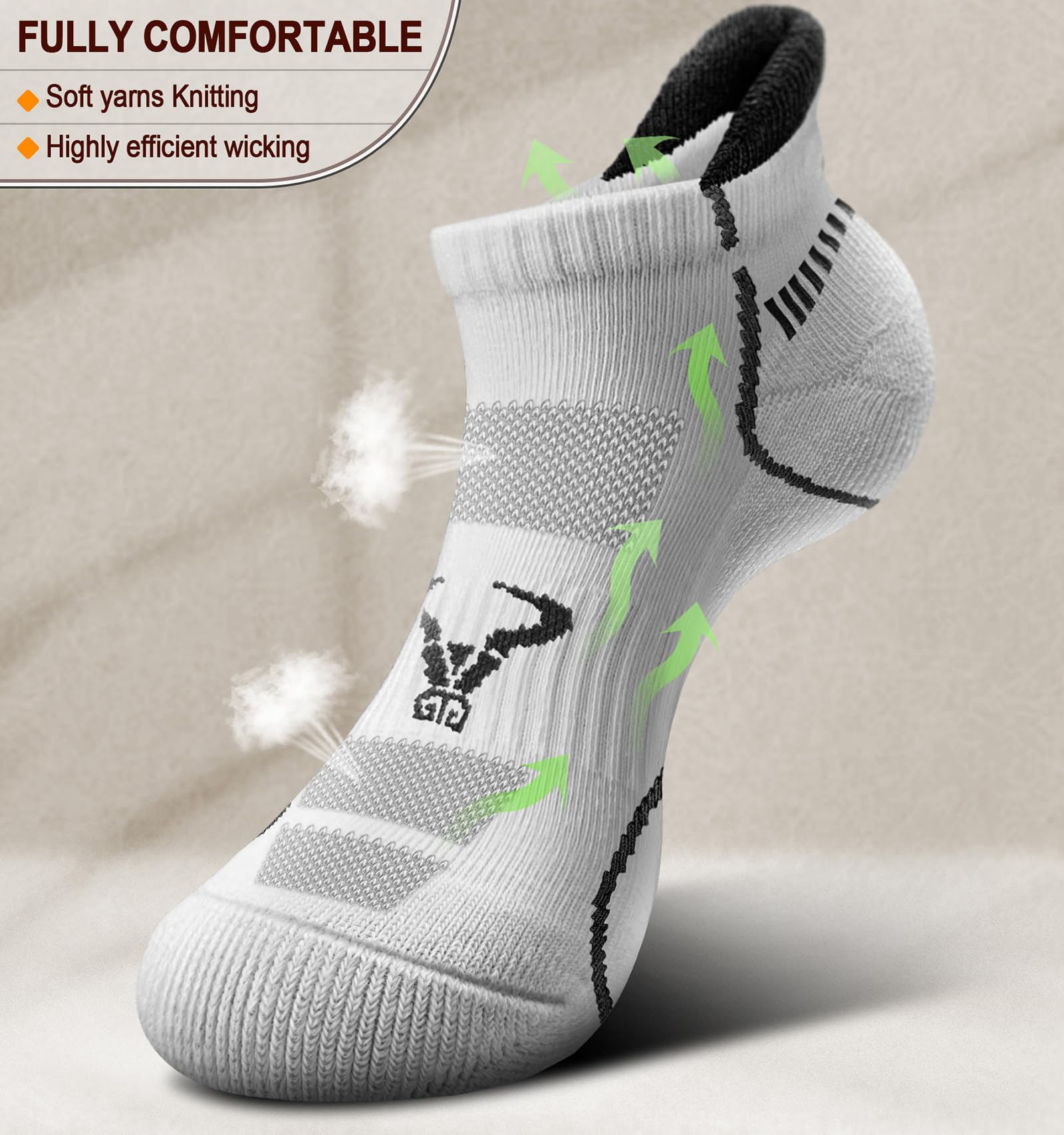 BREATHABLE--Low cut socks with high efficient wicking yarns,plus the net kitting on instep,these socks are super breathable to keep your feet dry and comfortable specially in walking or jogging;