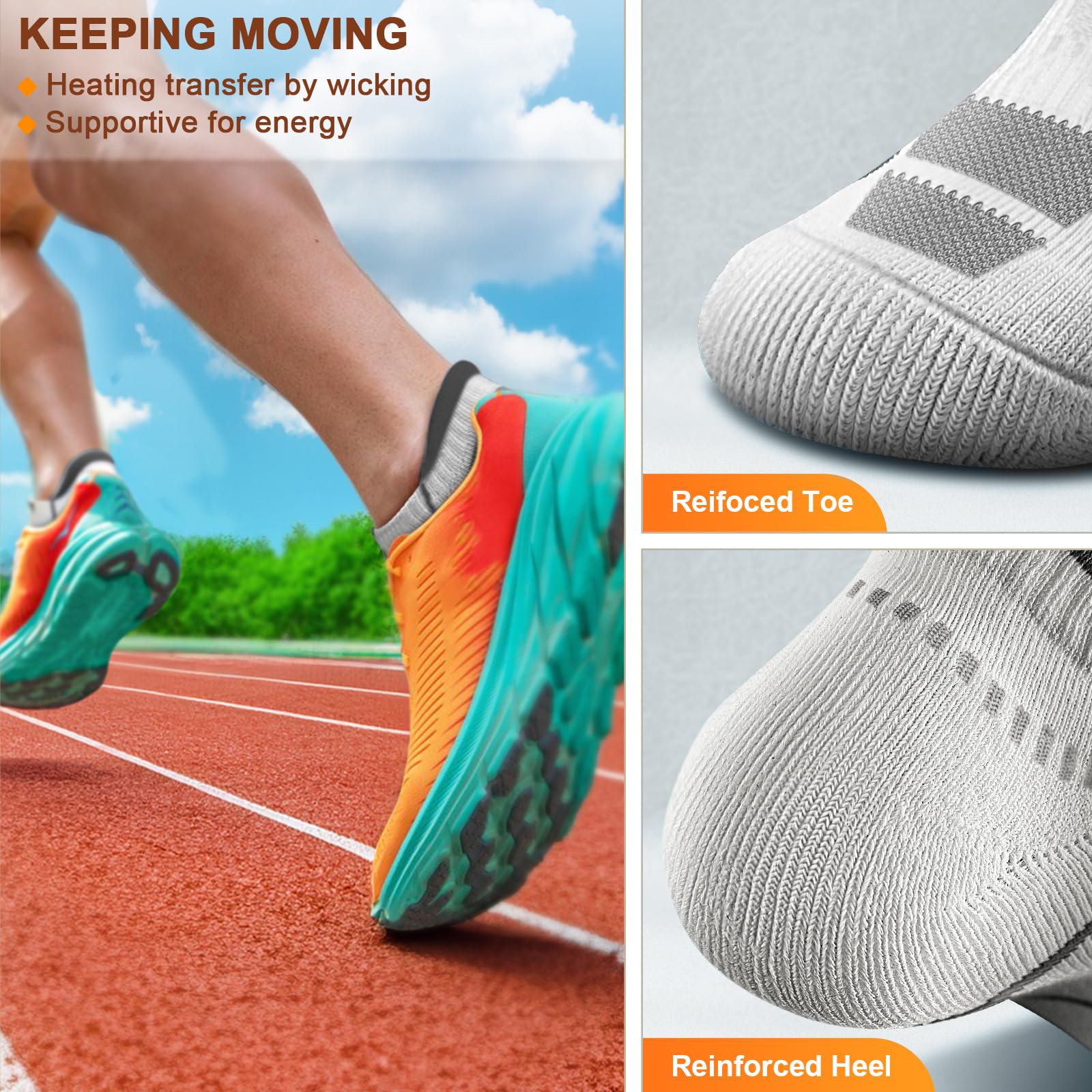 SURPPORTIVE--These socks get full cushioned sole and proper compression body,it makes you every step easier and get you enjoying jogging better;