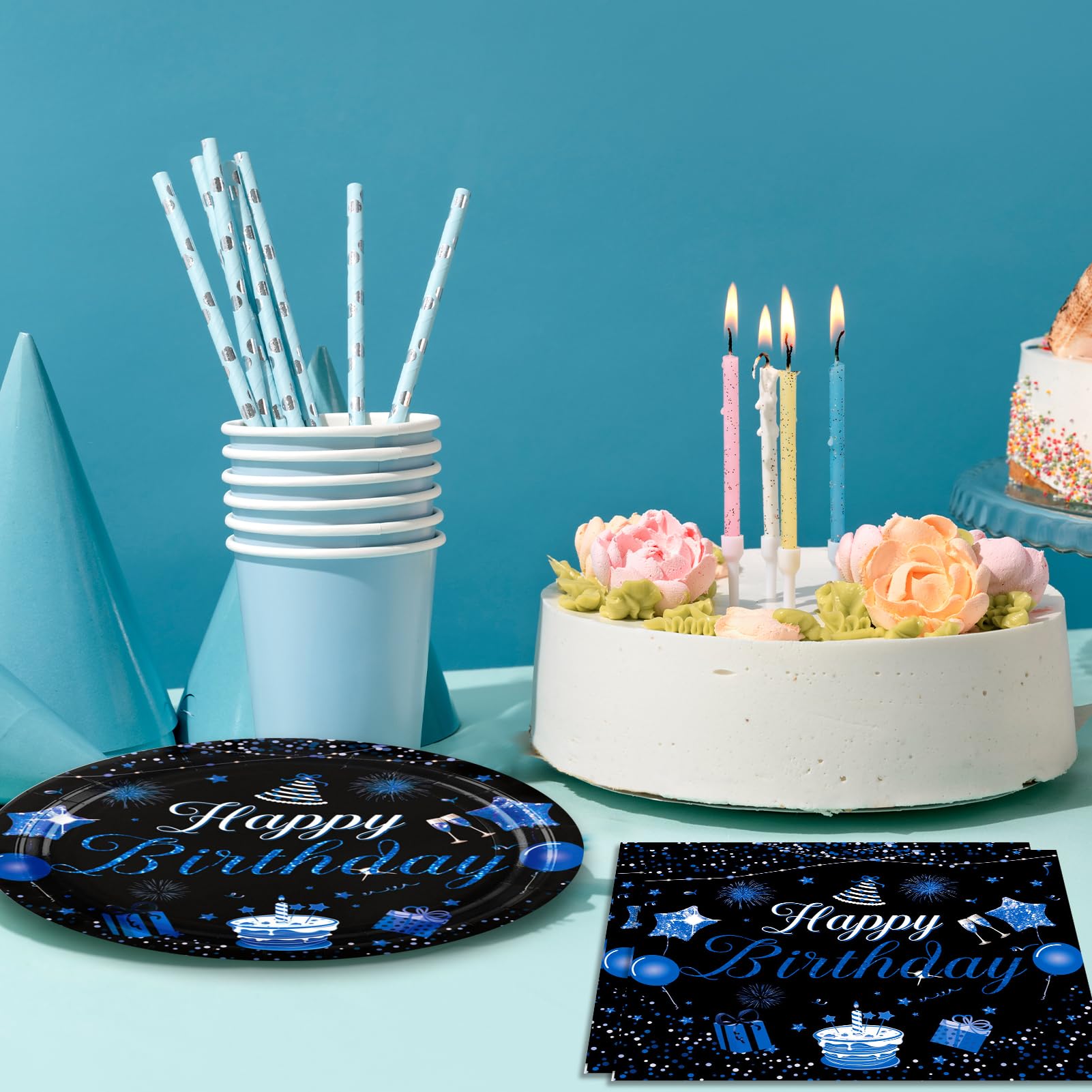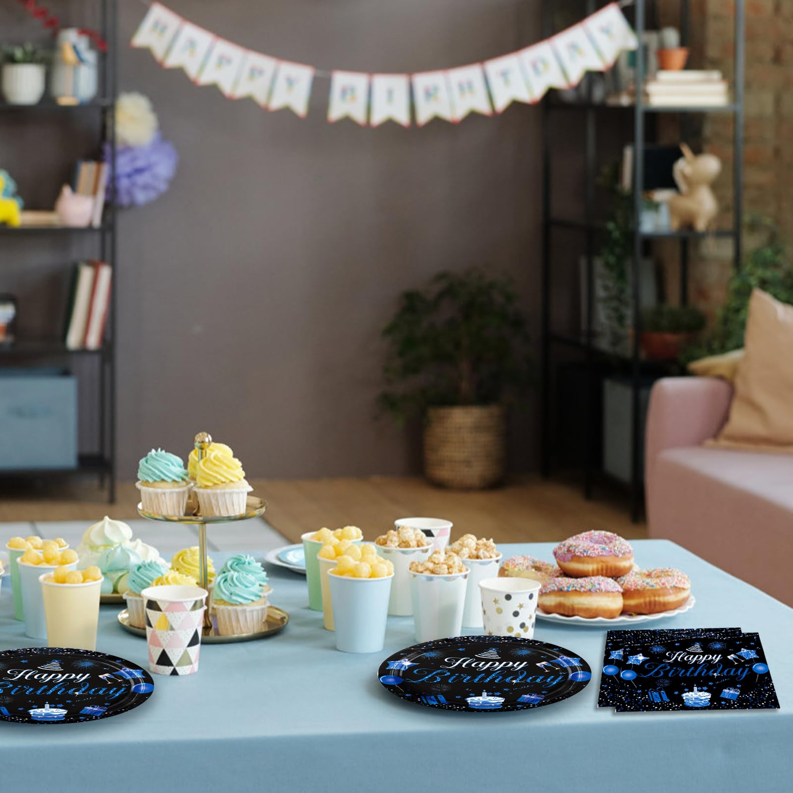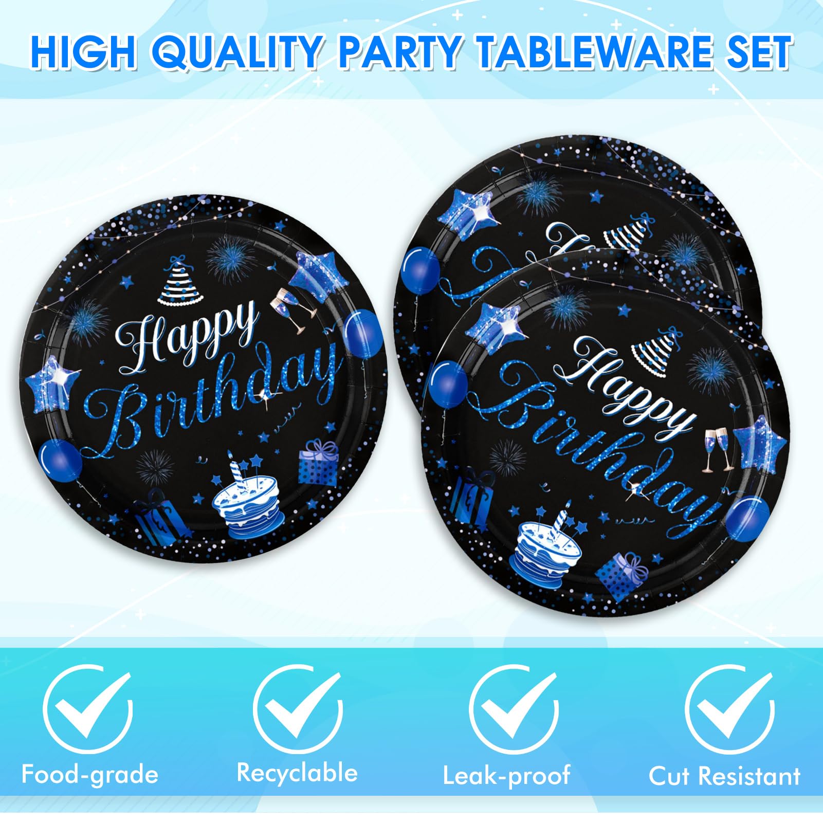 Time Saving:Blue party decorations will reduce your cleanup process, after the event or party, you only need to throw the plates and napkins into the trash, saving you precious time and energy.Birthday decorations black will allow you to focus on enjoying the celebration instead of worrying about the mess after the party.