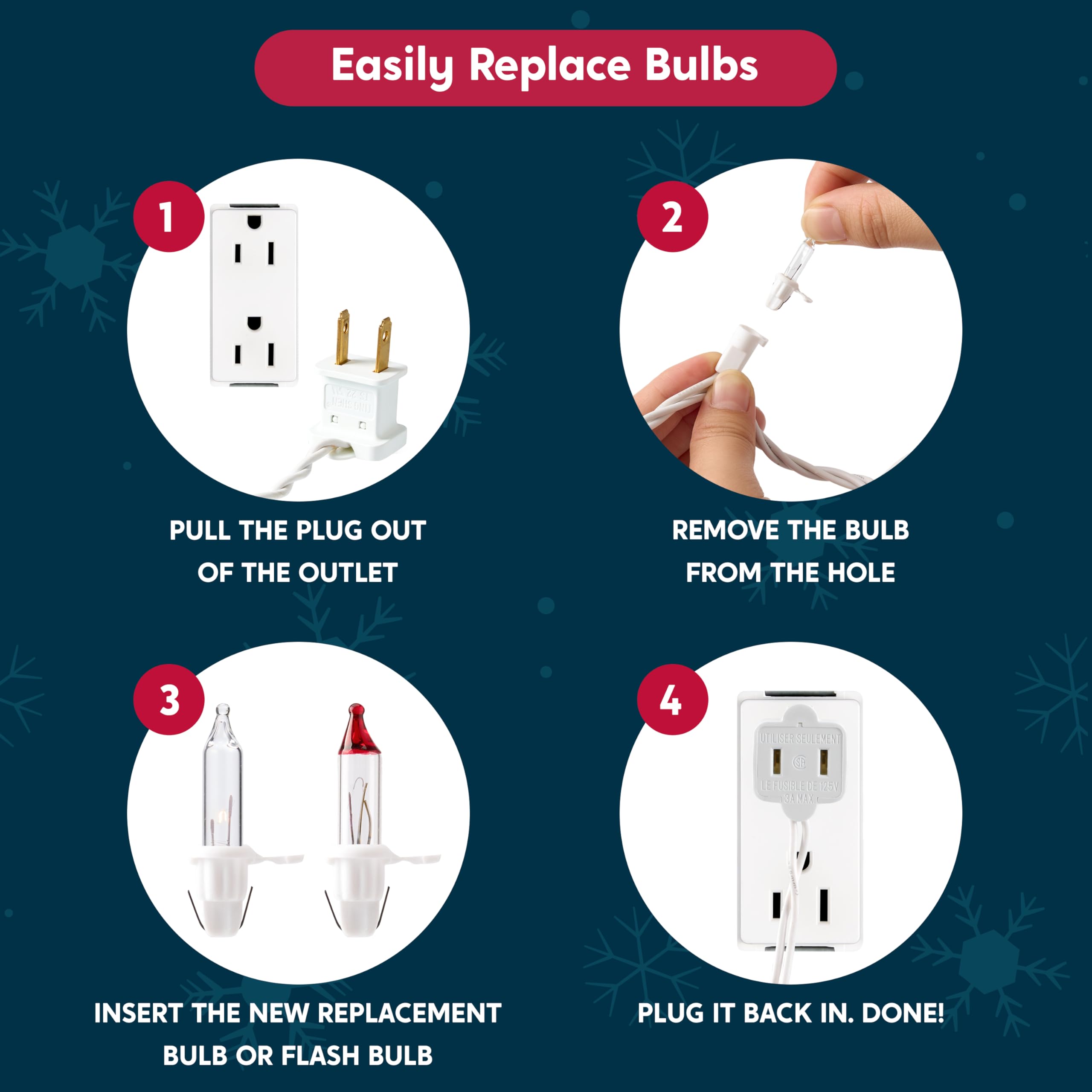 All-Weather Durability & Independent Bulb Design.Engineered for reliability, these independently wired bulbs ensure if one burns out, the rest stay lit! Designed with premium materials to endure outdoor conditions, and includes spare bulbs and fuses for easy replacement—ideal for long-lasting seasonal and year-round use.