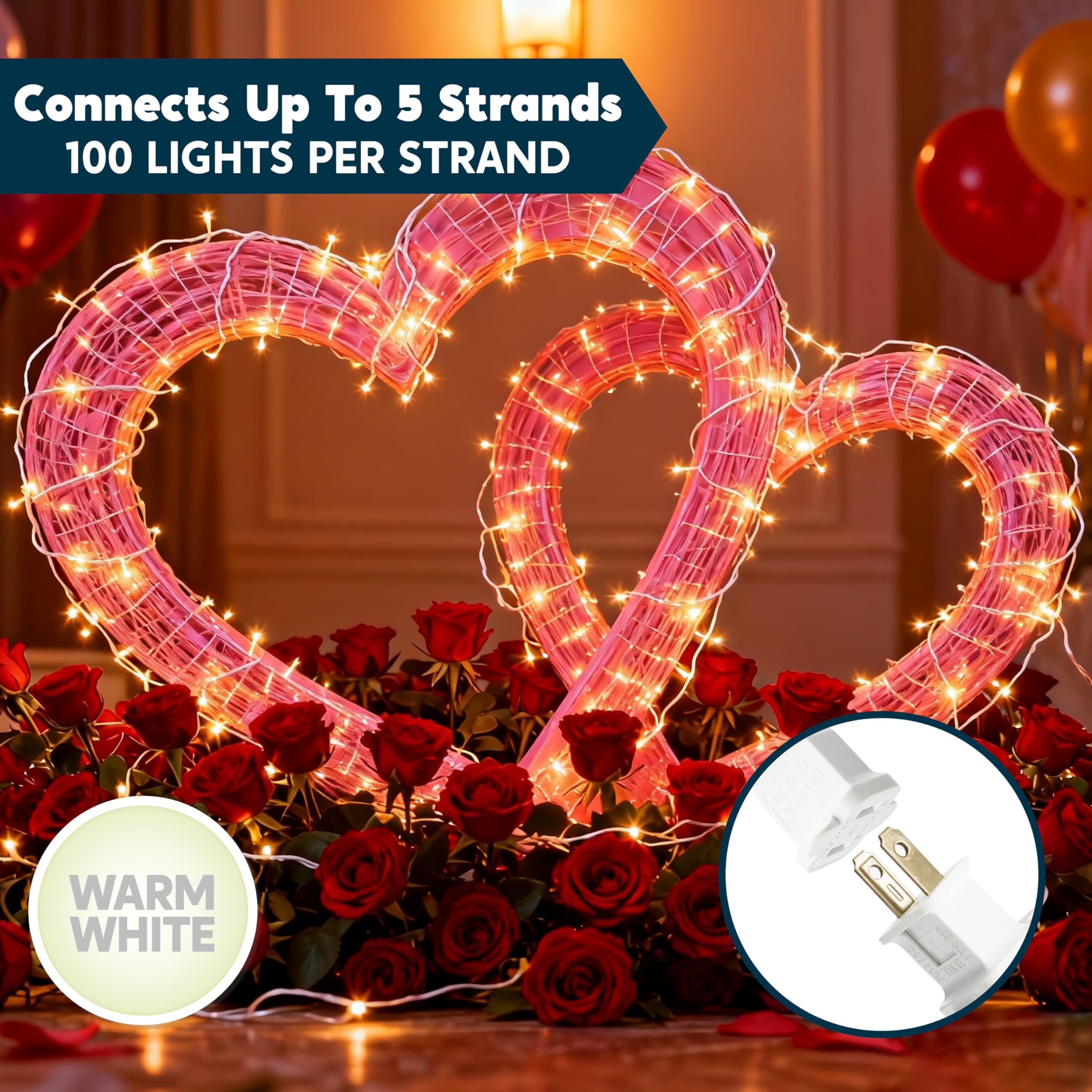 Connect Up to 5 Sets for Expansive Displays. Maximize your decorating power! These connectable Christmas lights feature end-to-end connectors, allowing you to link up to 5 sets for over 100 feet of continuous lighting. Perfect for covering large outdoor areas, staircases, or hallways without multiple power sources.