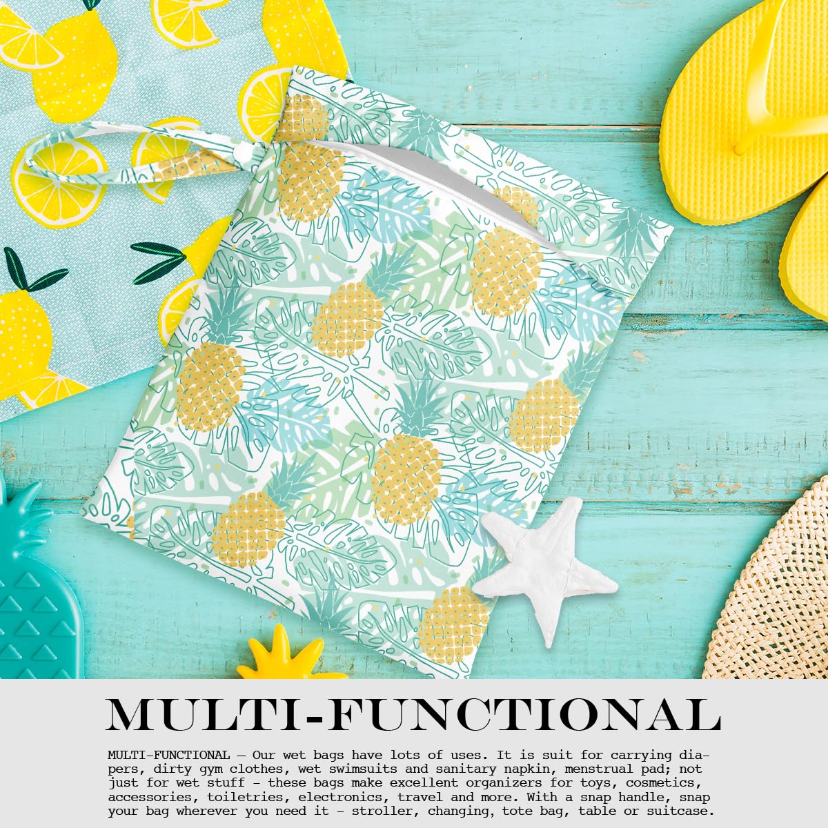 MULTI-FUNCTIONAL – Our wet bags have lots of uses. It is suit for carrying diapers, dirty gym clothes, wet swimsuits and sanitary napkin, menstrual pad; not just for wet stuff - these bags make excellent organizers for toys, cosmetics, accessories, toiletries, electronics, travel and more. With a snap handle, snap your bag wherever you need it - , changing,tote bag, table or suitcase.