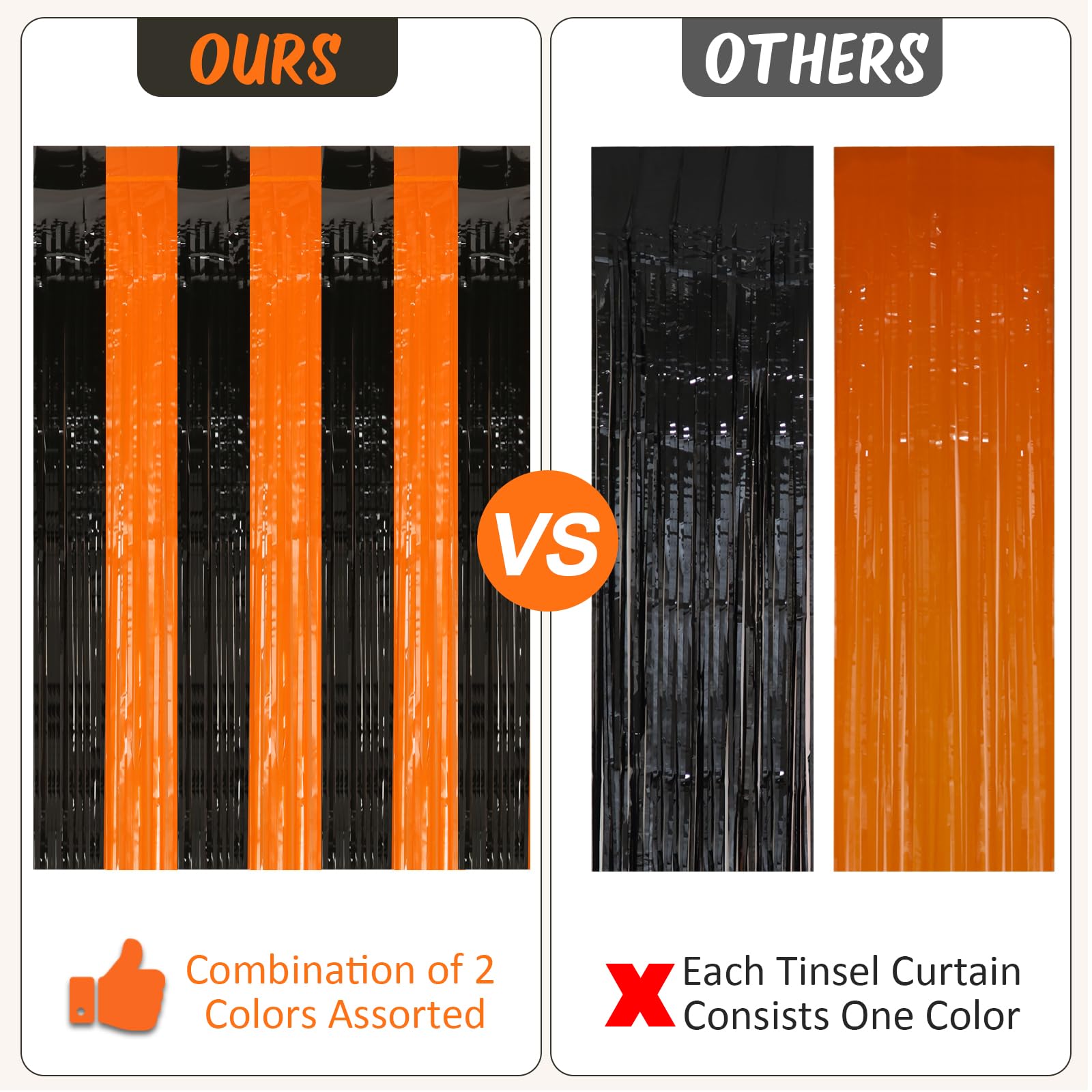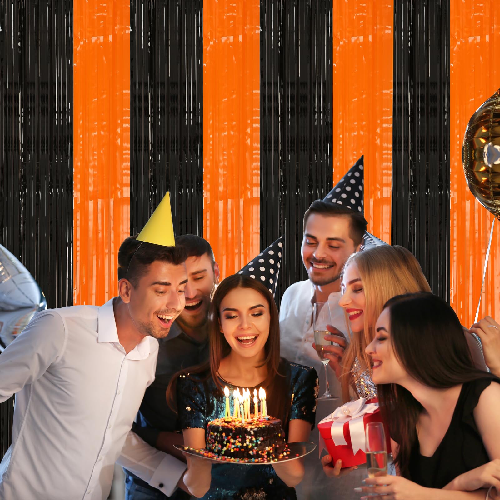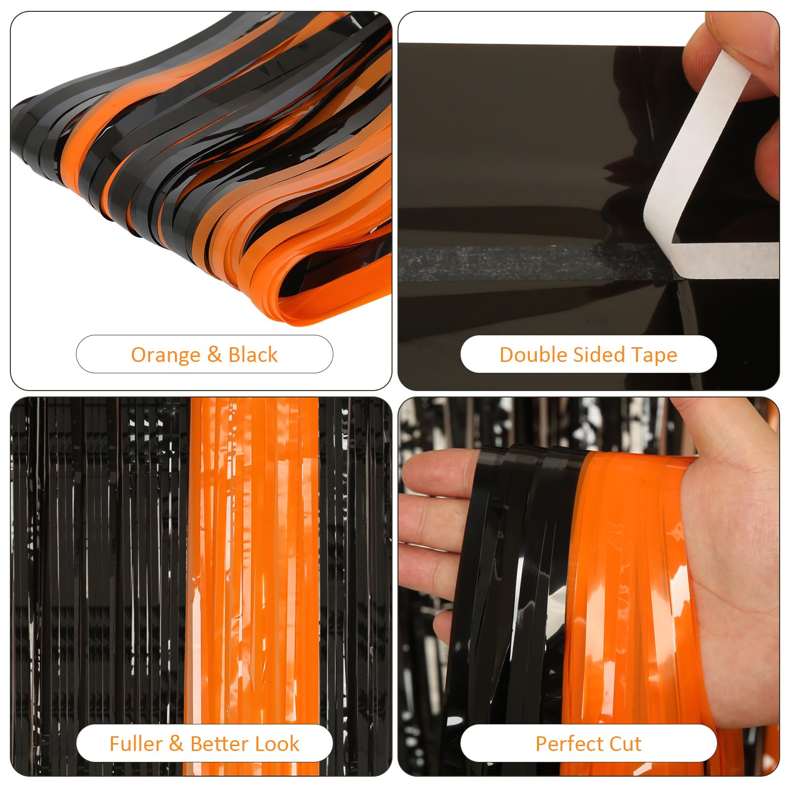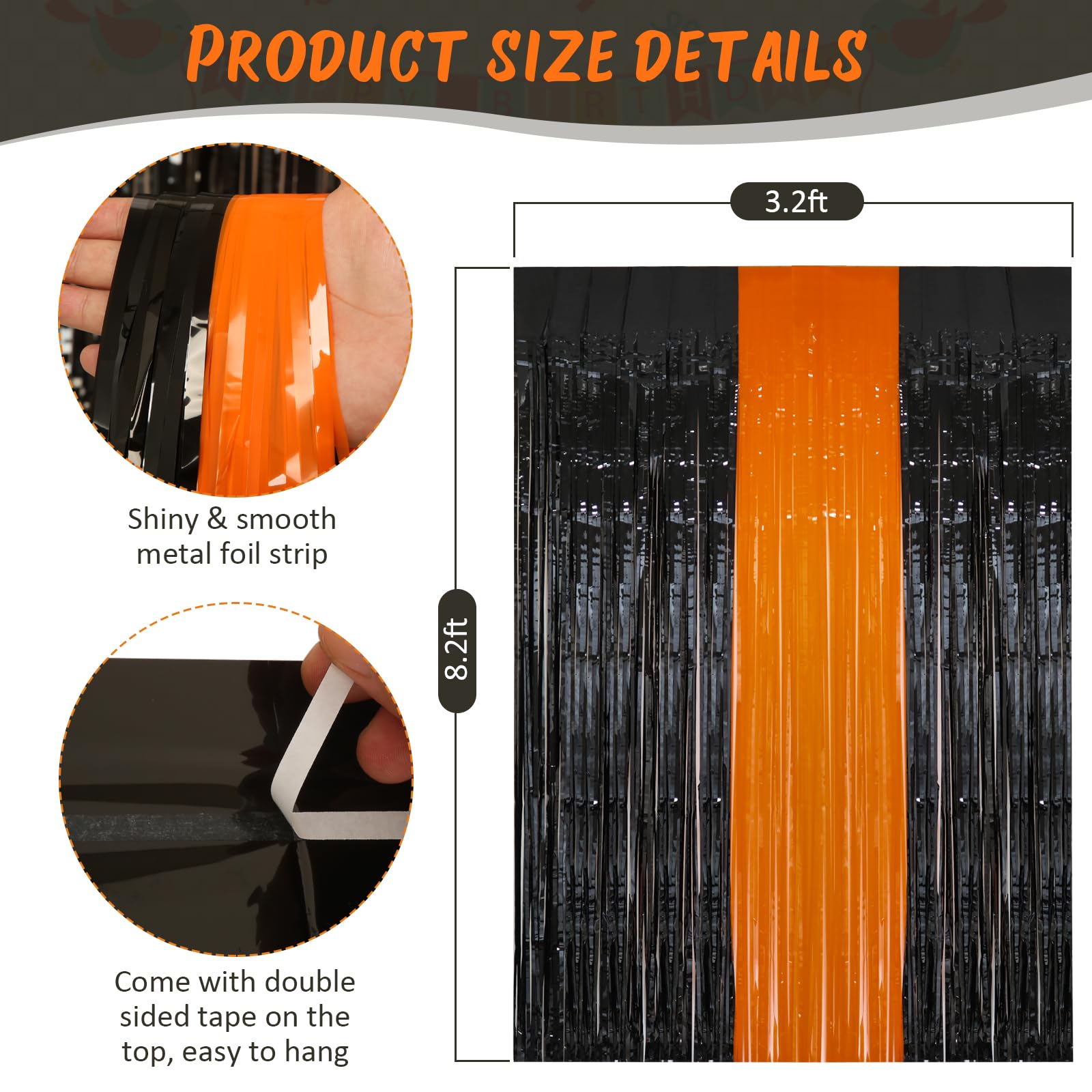 【Package Included】2 pack orange black Foil Fringe Curtains, each Tinsel Curtains size is 3.2X8.2 feet, perfect for Halloween party Thanksgiving party photo backdrop decoration. The beautiful Fringe Backdrop perfectly combined with Halloween decorative skull, spider web, Halloween spider, pumpkin, specter etc. A must-have for Halloween party decorations. With this black and orange Tinsel Backdrop, you can quickly transform your home into a shining streamers happy birthday decorations.