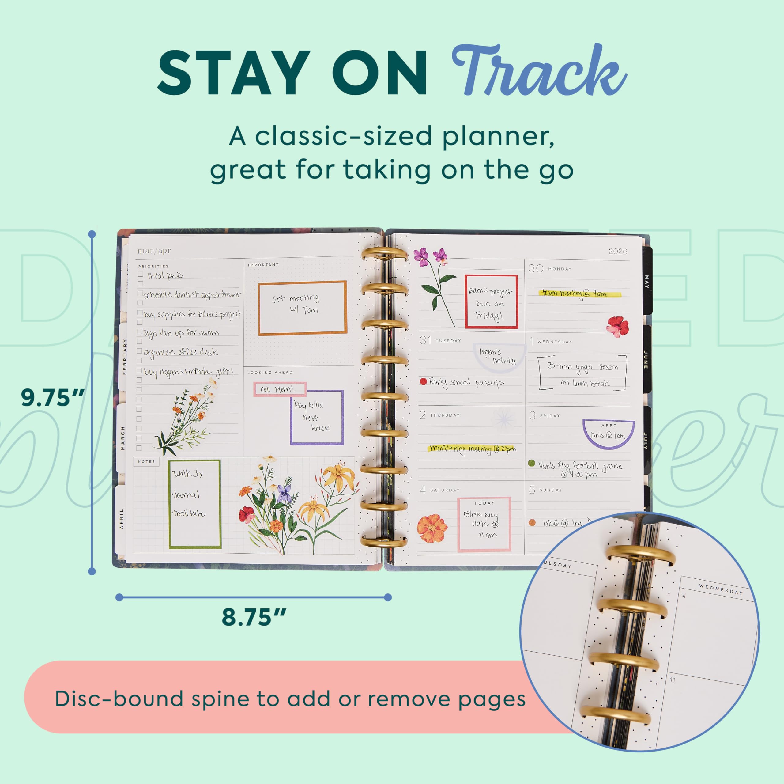 2026 PLANNER: Our Classic-size planner is a classic for a reason! It has the ideal amount of space for writing, planning, and prioritizing projects. This 2026 daily planner features celestial and floral designs and gold-foil accents. Carry it on your commute to school or work to always have your plans on hand.