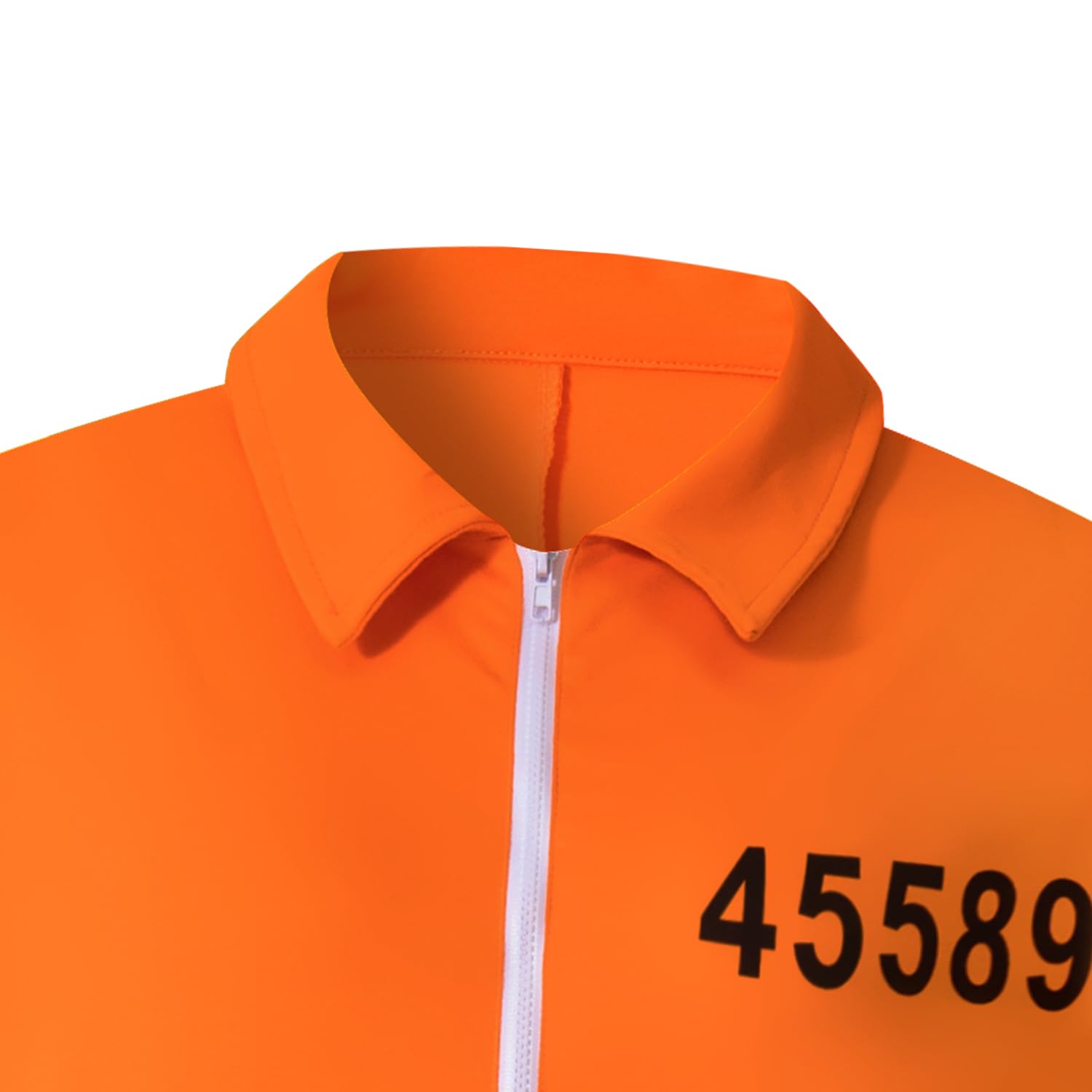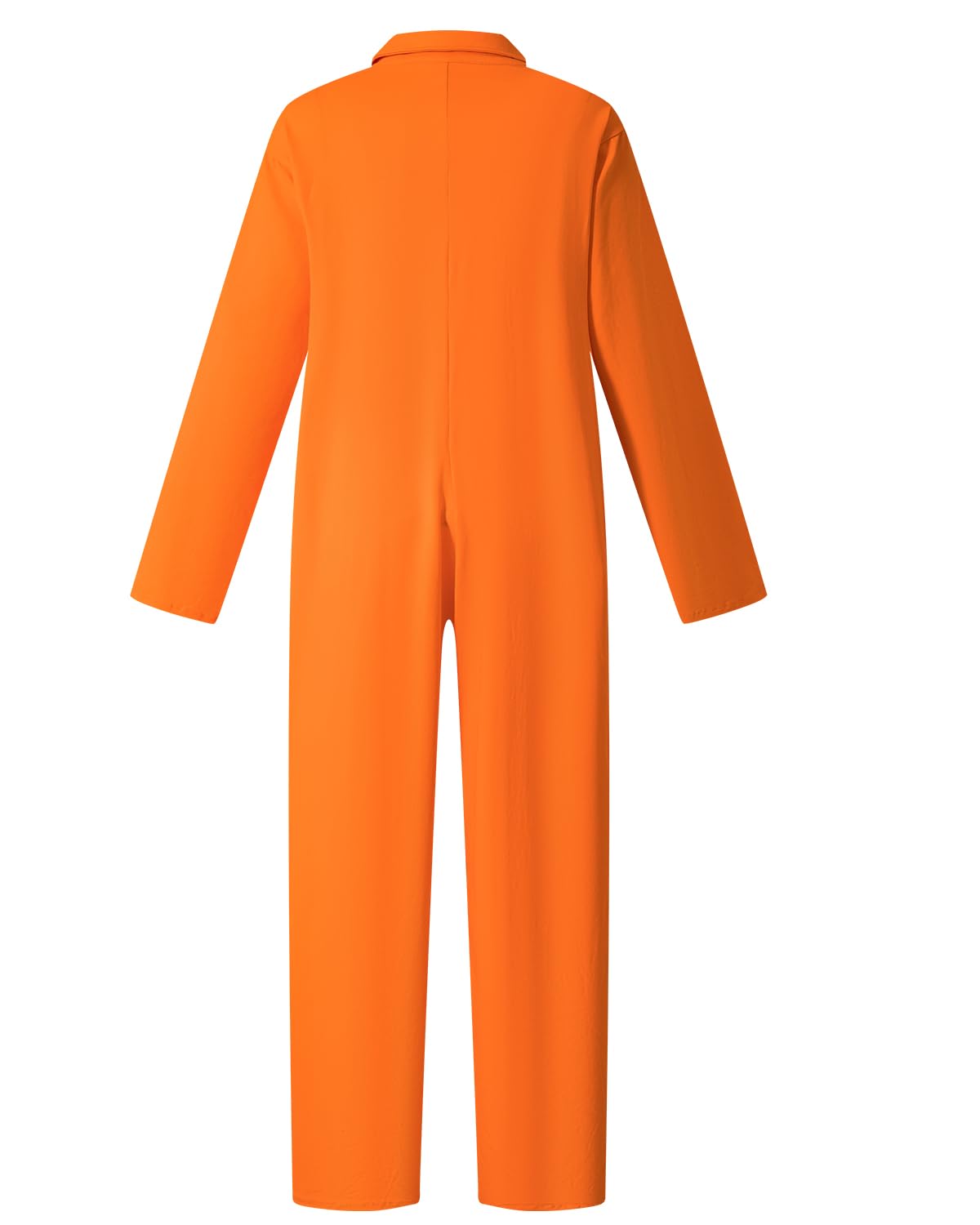 Design:Orange prisoner costume,long-sleeve front zipper jumpsuit.