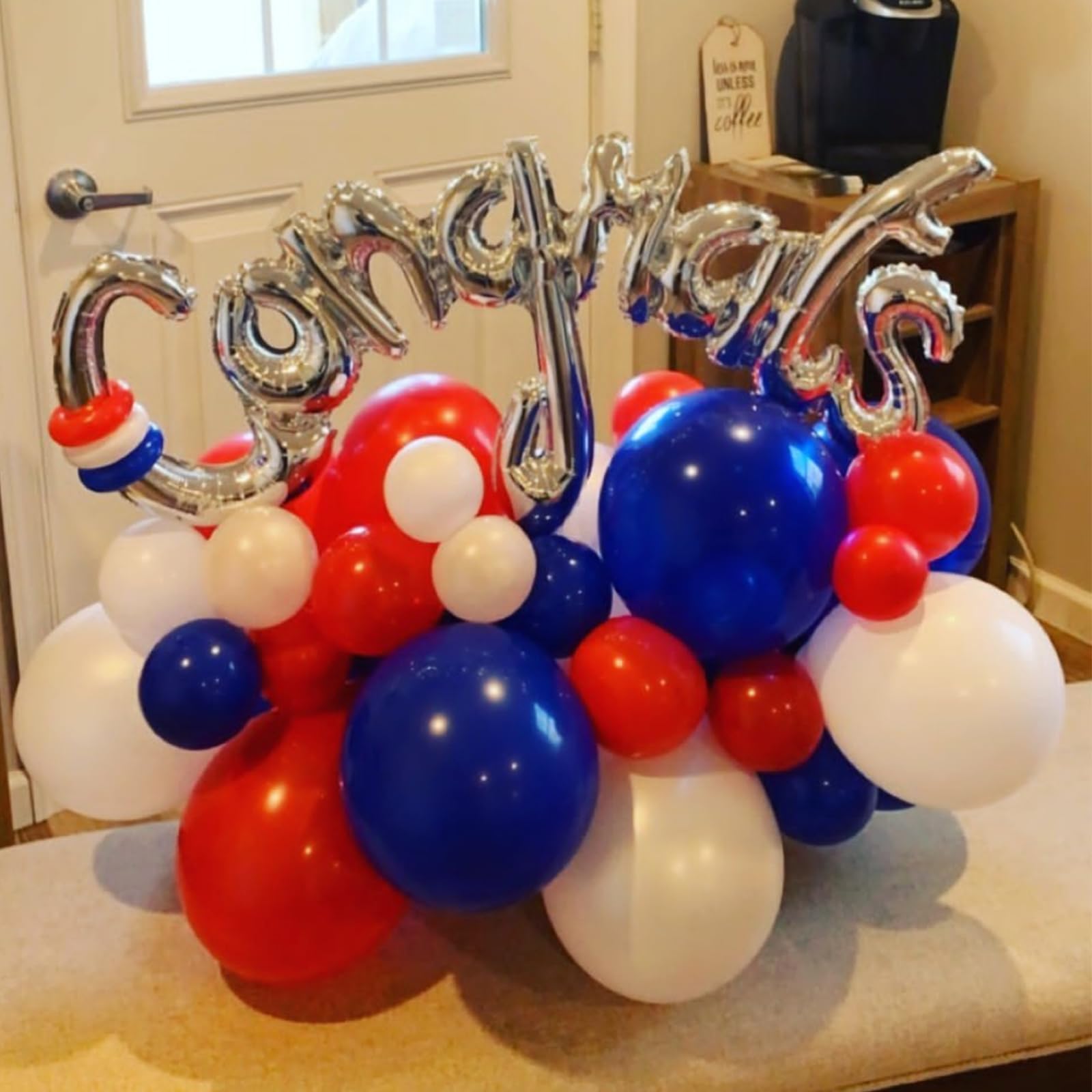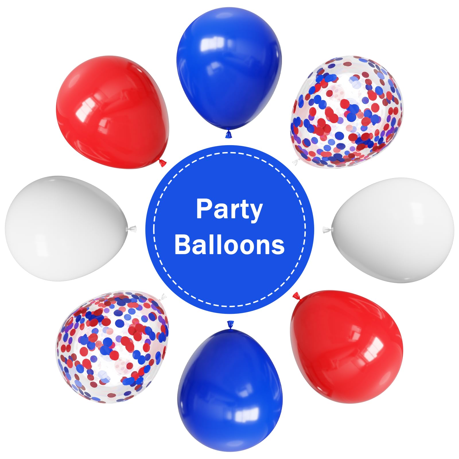 {Red White and Blue Balloons Party Supplies} Our red blue and white latex balloon sets can add atmosphere to your party. It is the perfect decoration for happy occasions or celebratory moments such as graduation party, 4th of July patriotic party, baseball themed party, suitable for indoor and outdoor events.