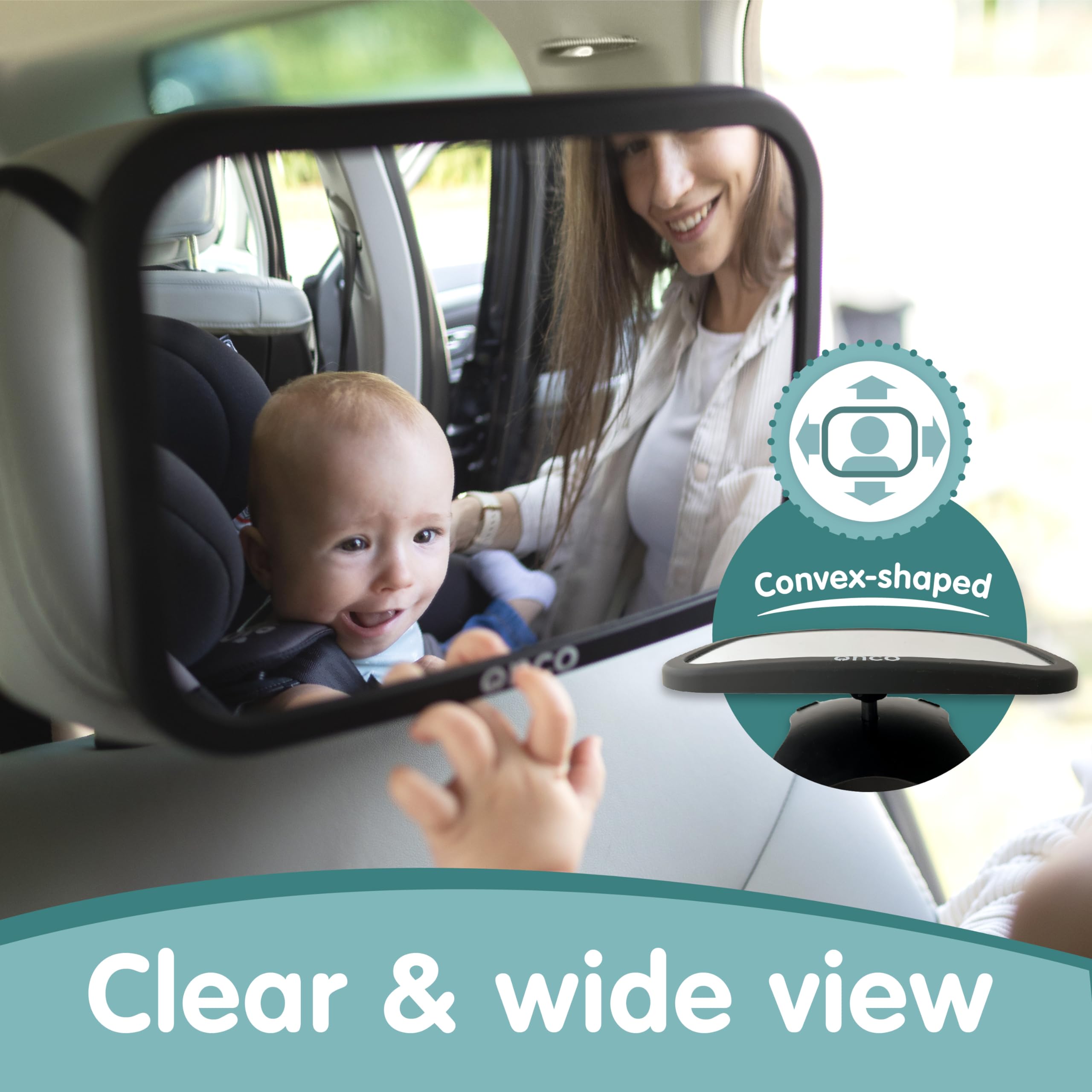 CLEAR & WIDE VIEW - The convex-shaped infant car seat mirror measures 9.6 x 6.8 inches and offers a crystal-clear and wide view of your baby without distortion. The backseat baby mirror allows you to see what's going on in the back without pulling over to check.