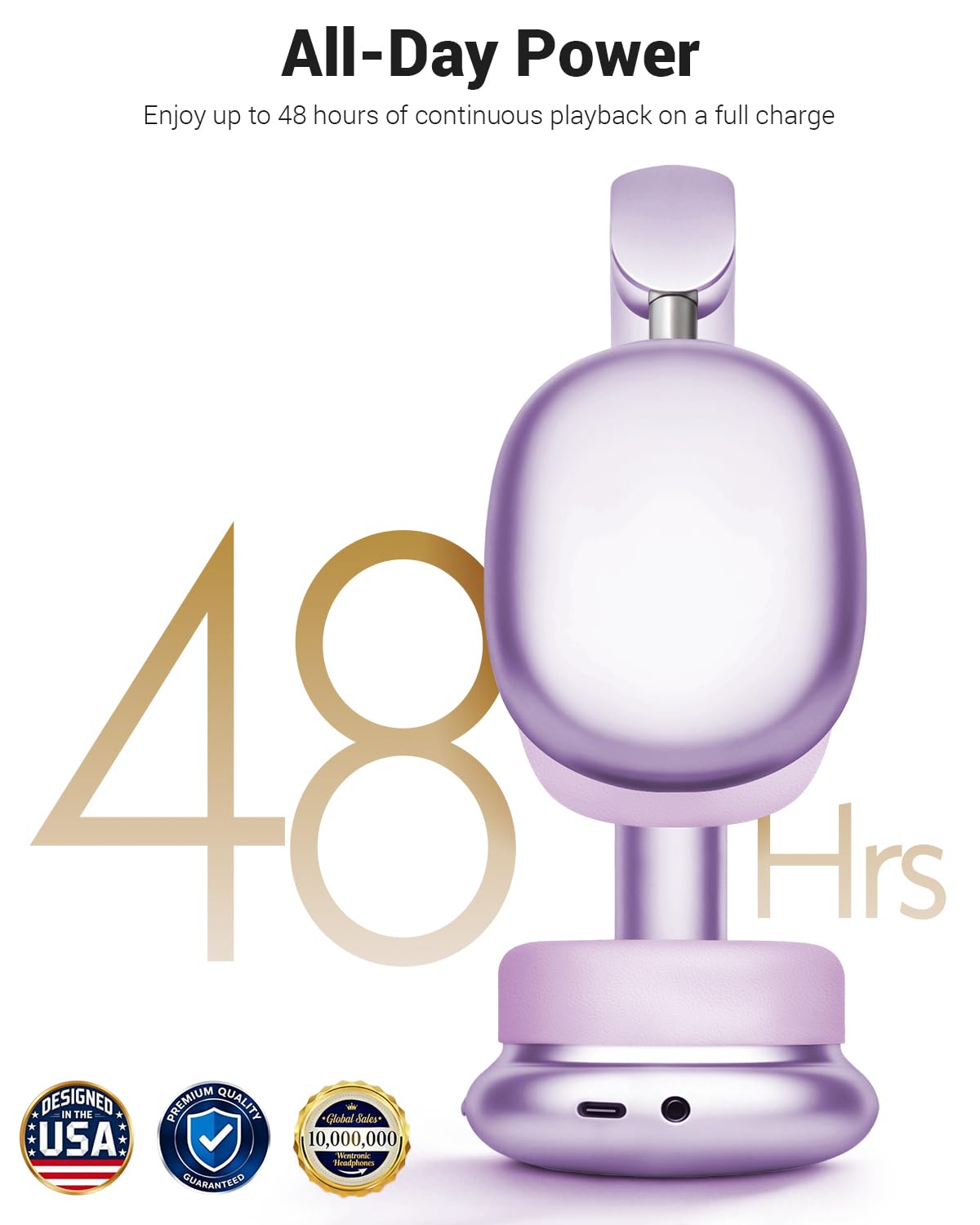 Up to 48 Hours Playtime & Dual Modes - Enjoy up to 48 hours of continuous playtime on a single charge. When the battery runs low, simply plug in the included 3.5mm audio cable to switch seamlessly from wireless to wired mode—ensuring your music never stops, even on long journeys.