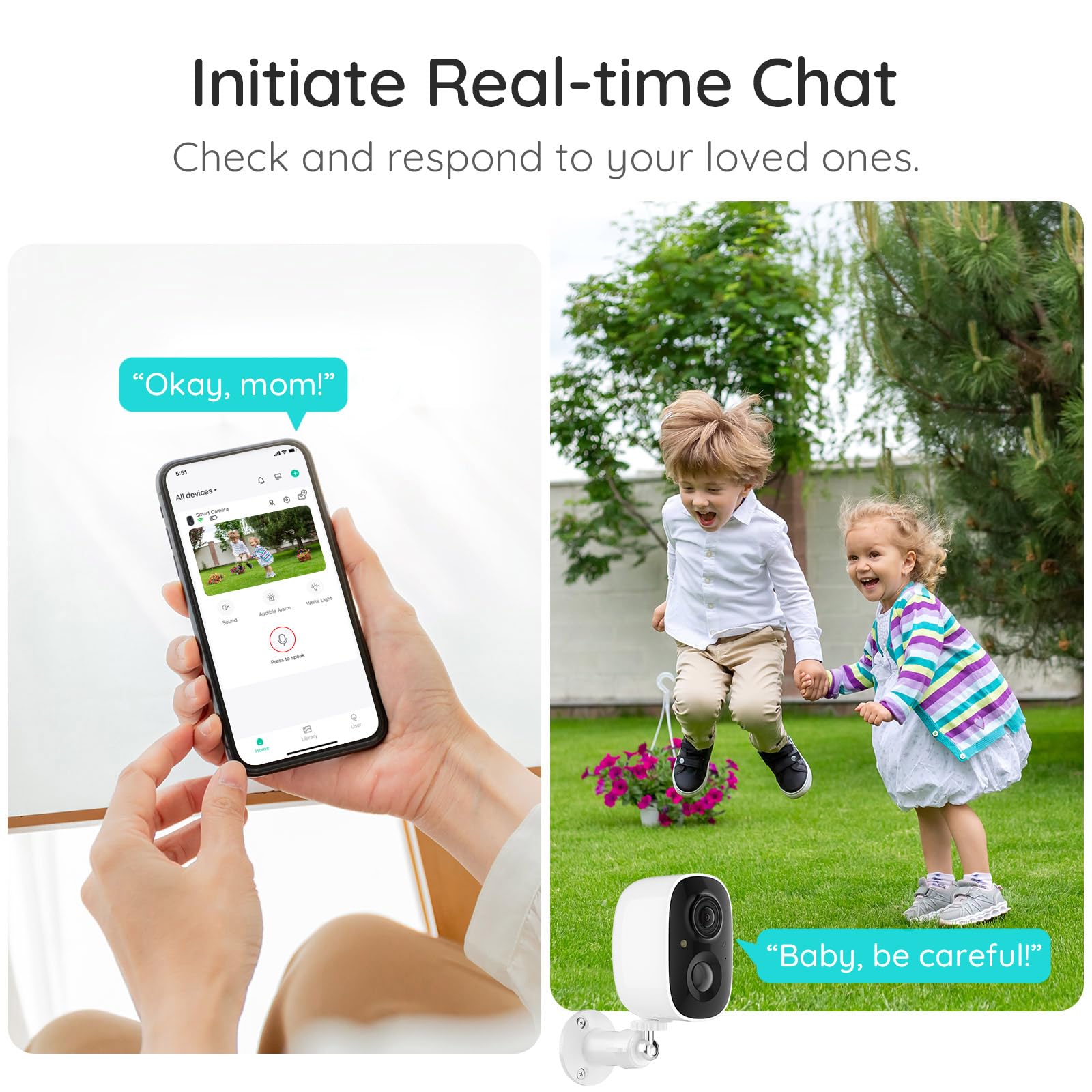 【Two-Way Audio, Siren, Spotlight Control】Take command of your space! Our wifi camera outdoor enables real-time two-way audio calls. With Alarm Settings, the security camera wireless outdoor can turn on spotlight and siren to deter intruders and unwelcome guests