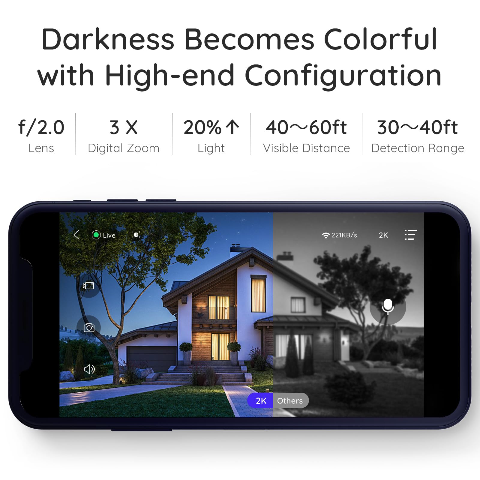 【2K Image & Night Vision】Equipped with infrared lights and a spotlight, this wireless outdoor security camera supports both black-and-white IR night vision and full-color night vision (adjustable in the VicoHome app's 'Video Settings' page), providing you with clear visibility even at night