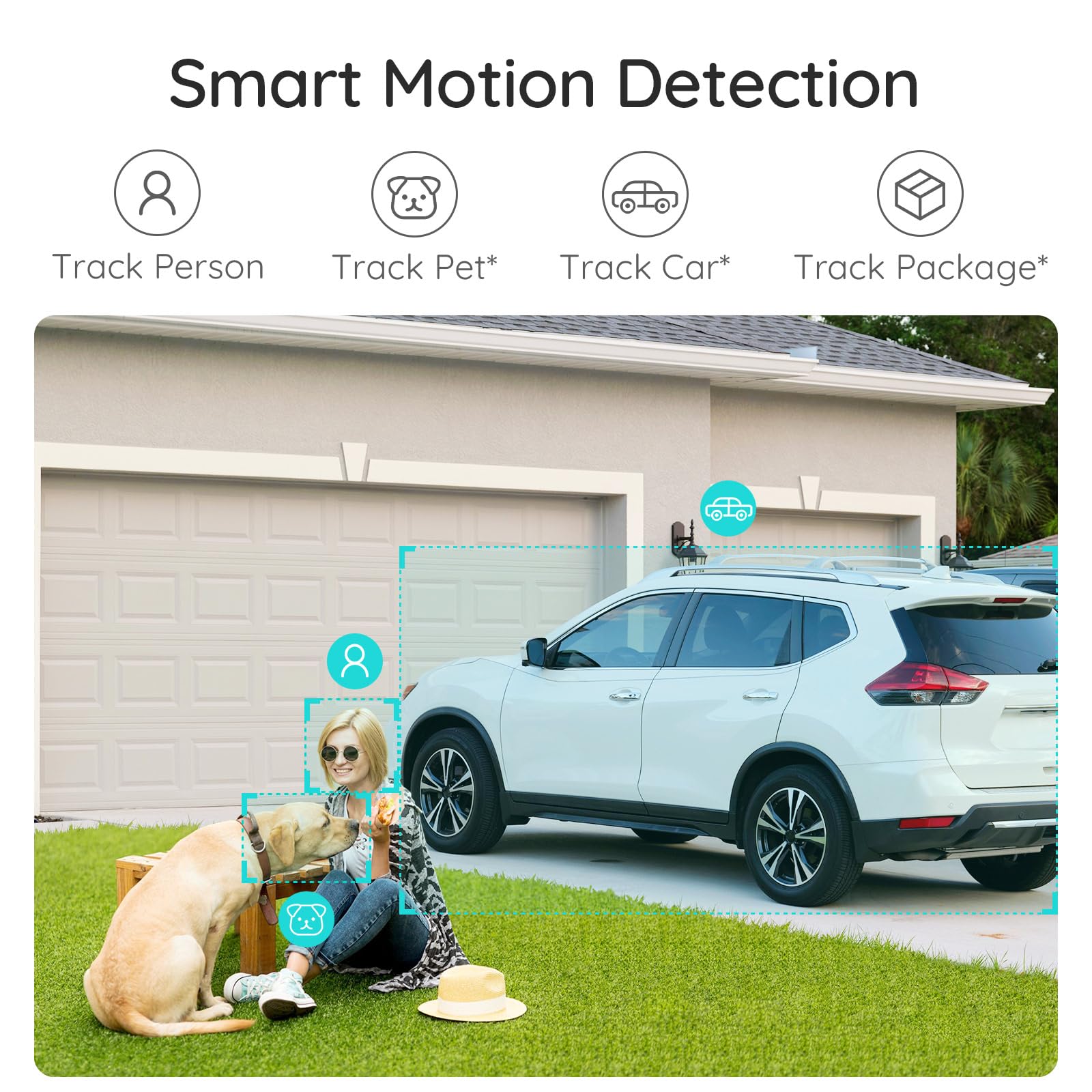 【Smart Motion Detection & 3 X Zoom】Enhance your security! Our wireless outdoor security camera uses advanced AI sensors to capture any move in real-time, identifing people, pets, vehicles, and packages(subscription required). By remotely controling live stream, you can also zoom in up to 3X to capture critical details