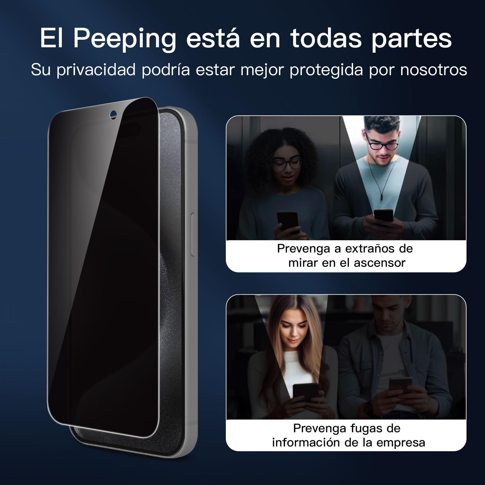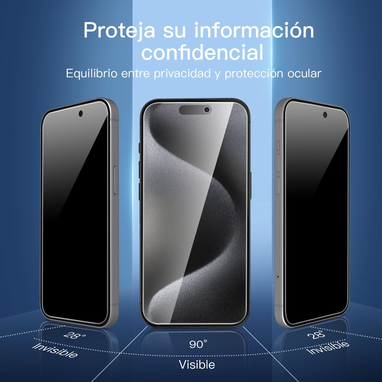 Content: 3 Tempered Glass Privacy Screen Protectors for iPhone 15 Pro (6.1 inches) and an easy installation tool. The privacy screen protector can protect the confidentiality of the data on the screen. It reduces the viewing angle to prevent prying eyes, keeping confidential information out of sight from third parties.