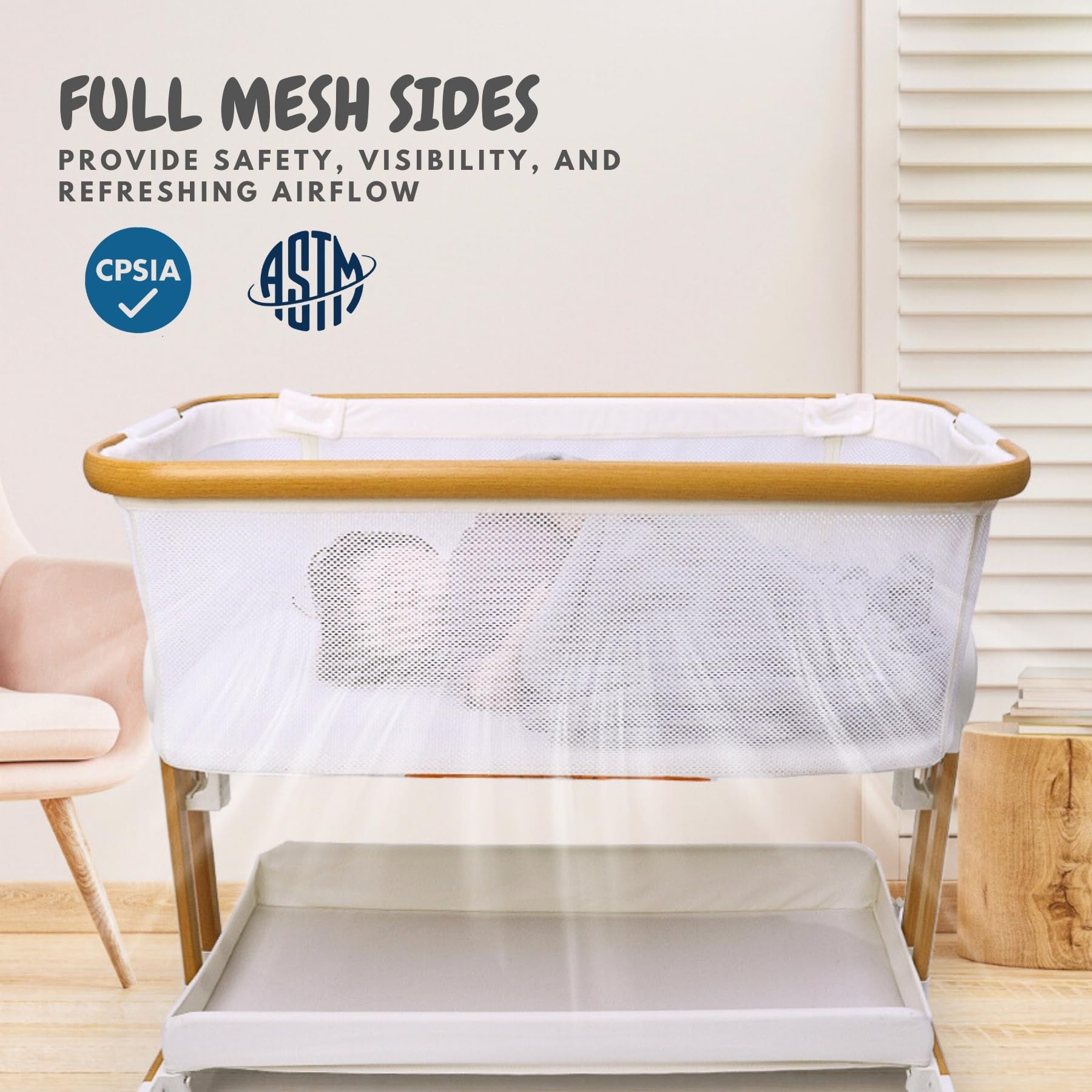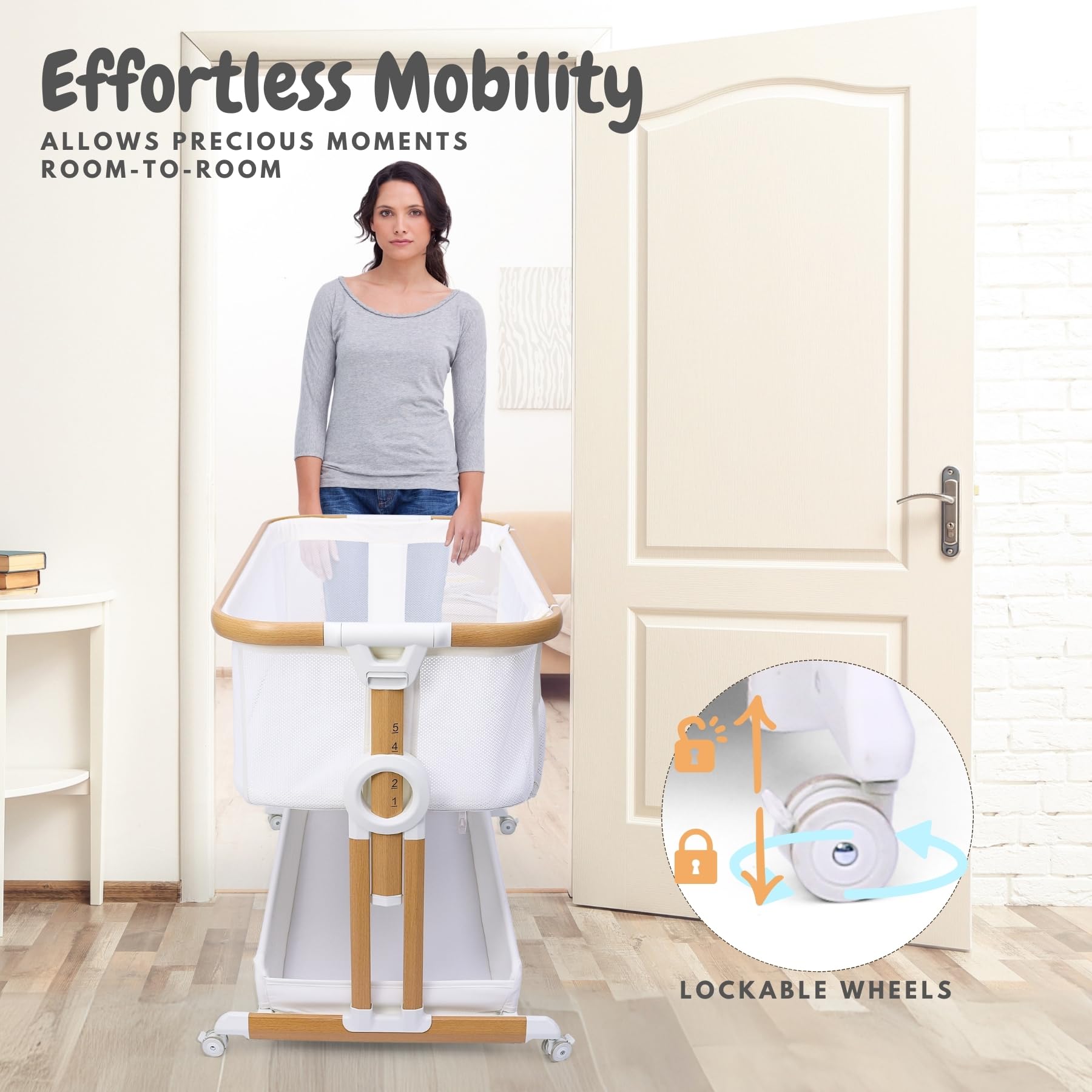 SMOOTH, SECURE PORTABILITY - Effortlessly transport your rolling bassinet with drop down side across rooms with 4 lockable wheels, providing you with the flexibility to keep your little one nearby and secure every step of the way.