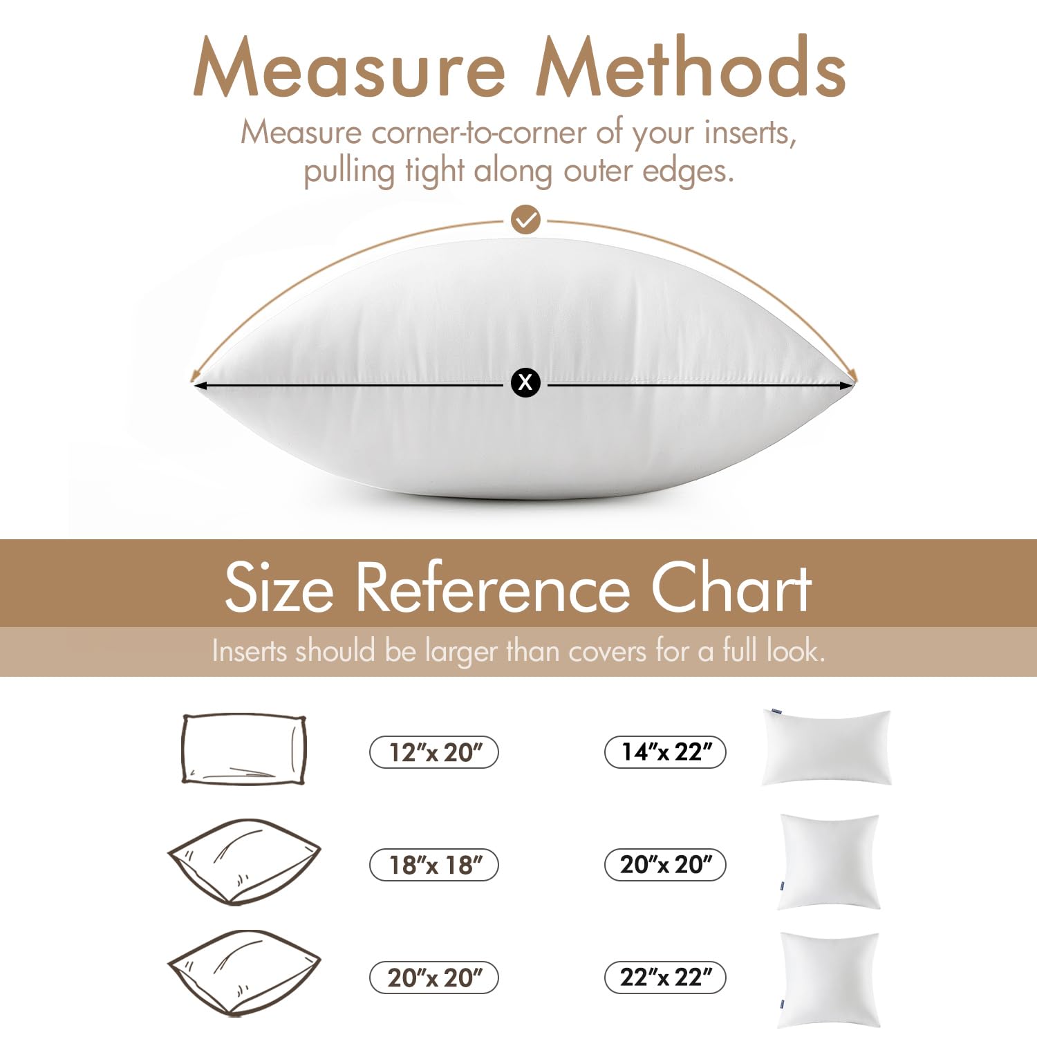 Pillow Inserts: This item includes 2 packs of 18x18 throw pillow inserts. The surface is made by high density brushed fabric and the filler is high quality 7D polyester.