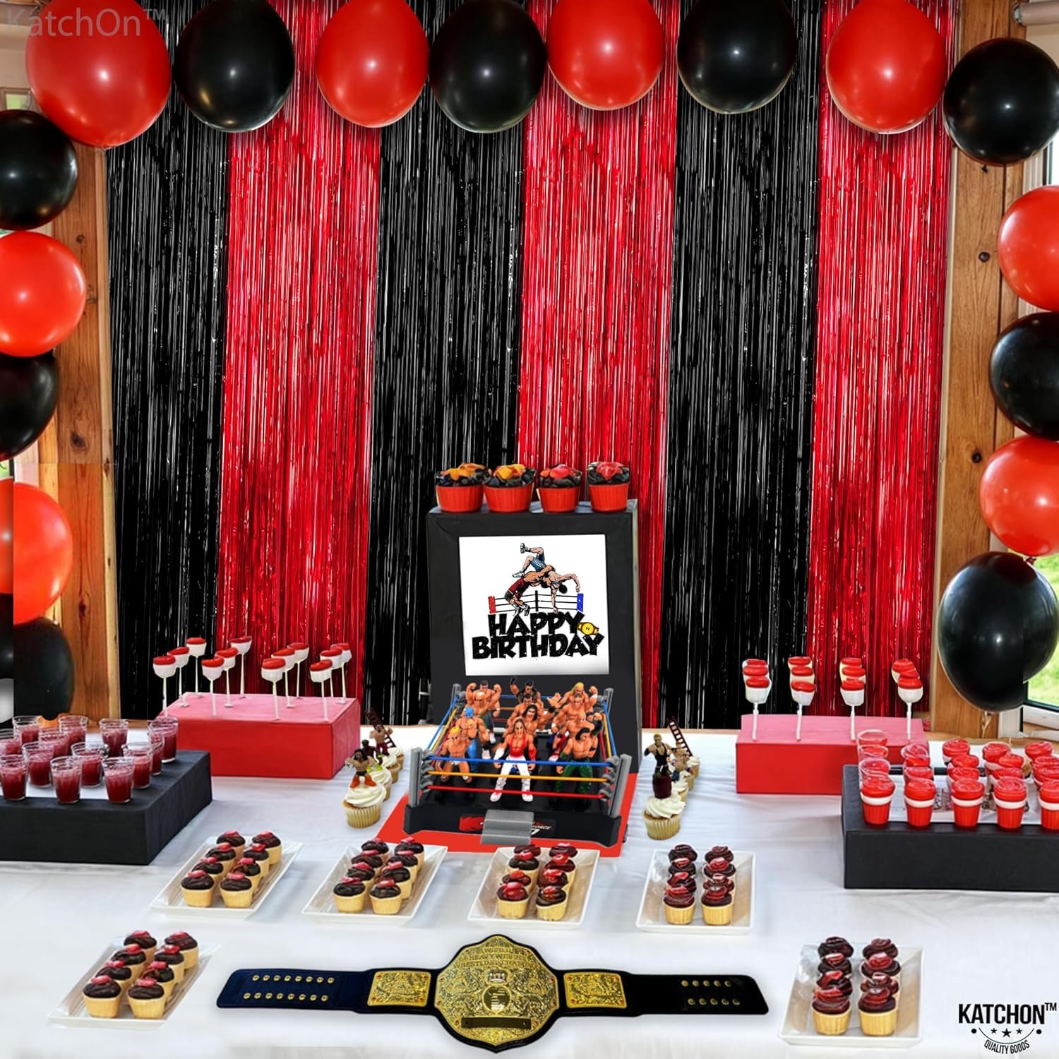 MULTIPURPOSE USES: Get creative by pairing this red and black foil fringe curtain with black and white streamers or red and pink streamers. Match with red and black balloons, black shimmer wall backdrop, or foil backdrop for movie night decorations. Perfect for boxing party decorations, black and red backdrop for stage, prom decorations 2025. Also complements black foil fringe curtain, gold and black streamers, and red carpet theme party decorations. Powered by BRND.ME.