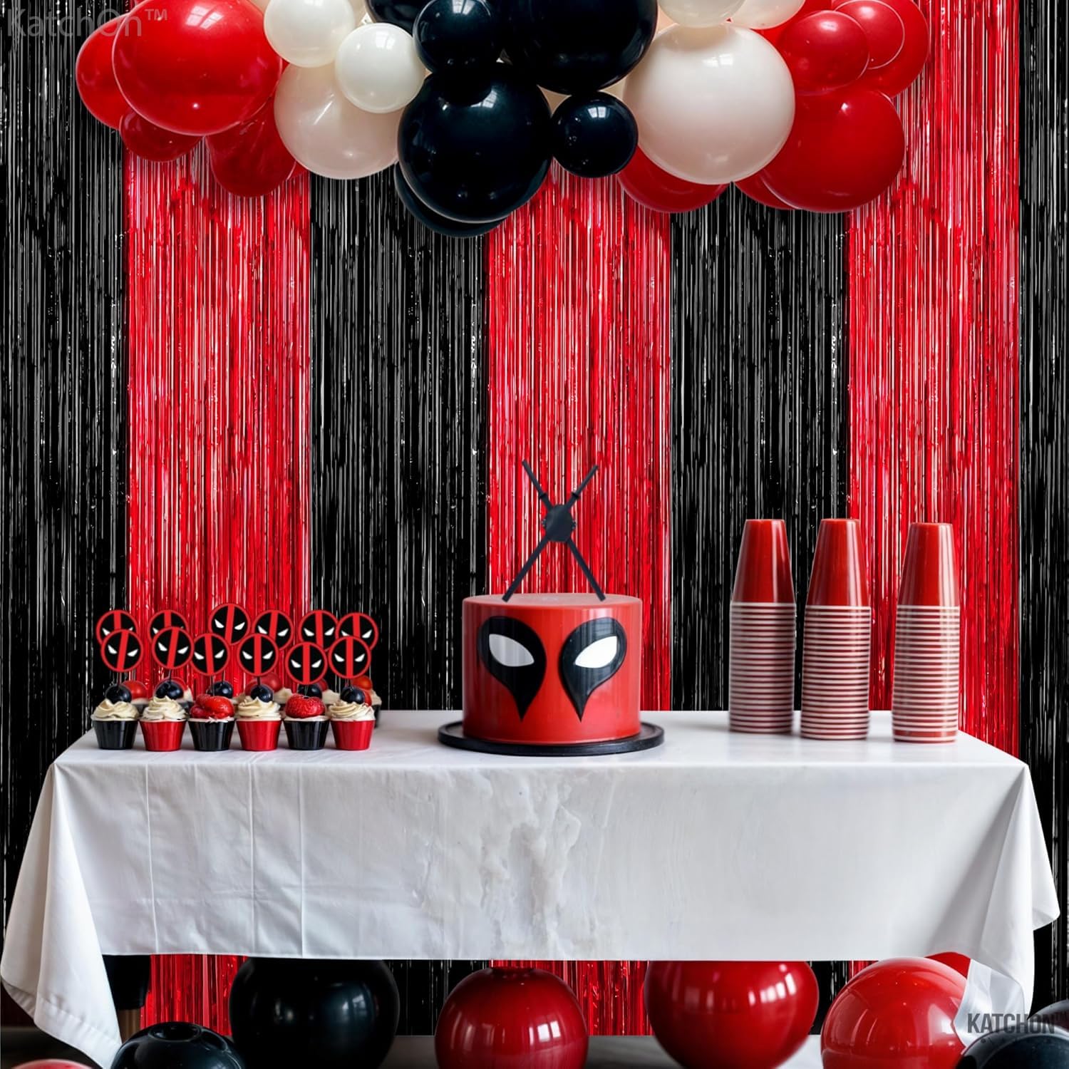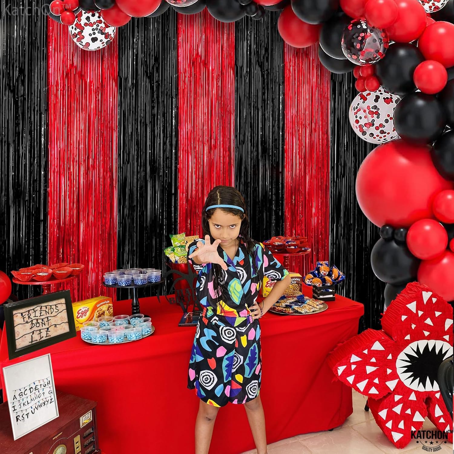BUY WITH CONFIDENCE | ELEVATE YOUR EXPERIENCE: Your satisfaction is our priority. Made from premium materials, these red and black decorations match the photos—no surprises. Whether it’s red and black birthday decorations, black and red party decorations, red backdrop, red streamers, or black party curtains, this product delivers. Also great for cherry decorations party, halloween birthday party decorations, halloween backdrop, red fringe, red garland or strawberry tinsel wide, halloween photo backdrop for dramatic effects.