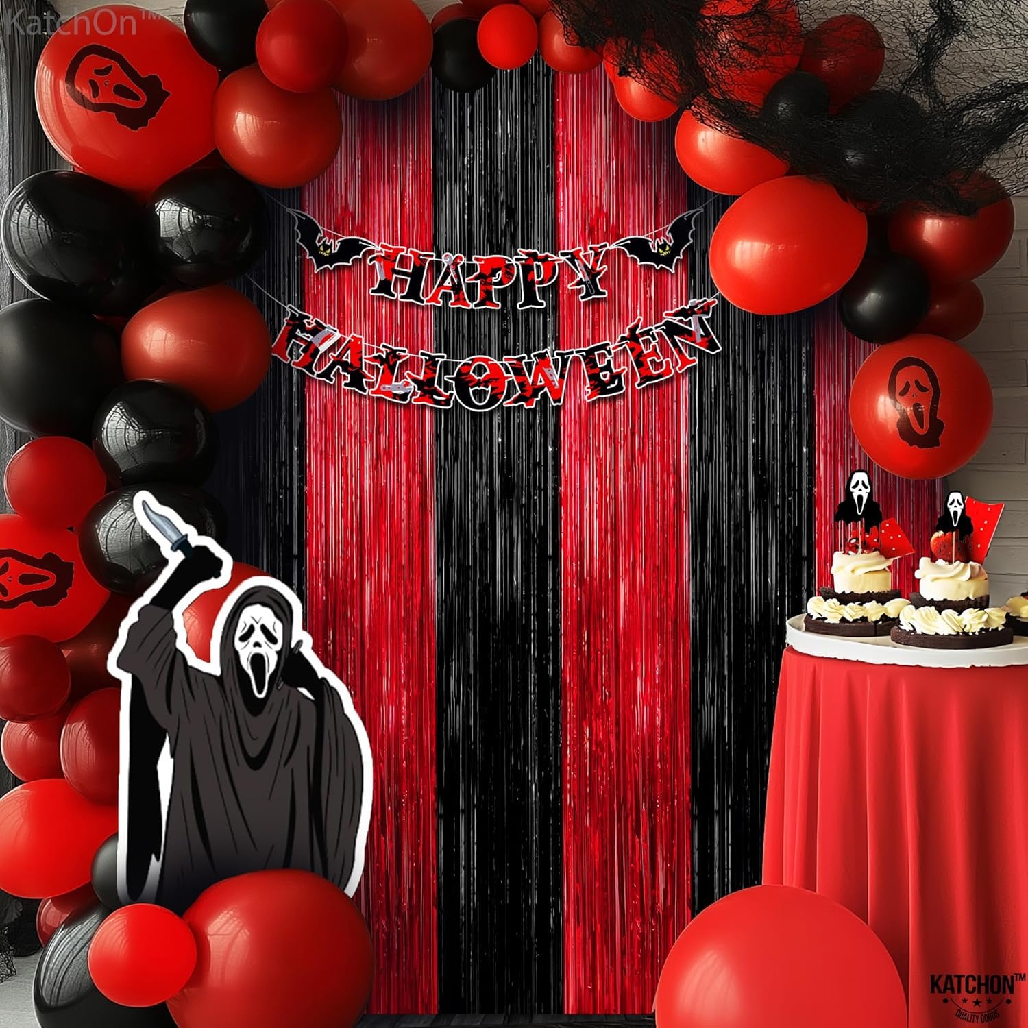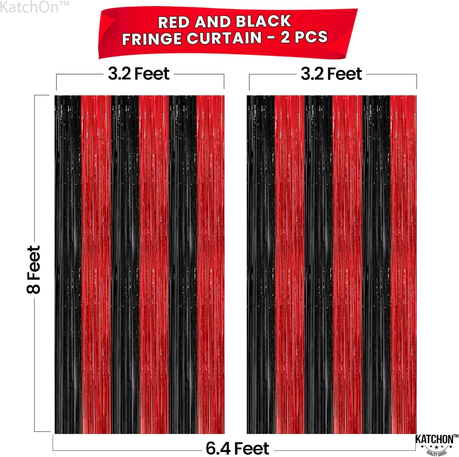 XTRALARGE 6.4X8 FEET | SHINY TWO DIFFERENT COLOR OF FOIL CURTAIN: Thinking about what to add to your party backdrops? With this black and red fringe curtain backdrop, you can create epic red door streamers, or even dark cherry red birthday decorations. With a touch of your creativity, turn this foil red and black backdrop into red photo backdrop, black fringe backdrop, red and black balloons decor or streamer background for black and red party decorations. Add cherry party decorations or carnival theme party decorations, halloween decorations, halloween decorations indoor to complete the look.