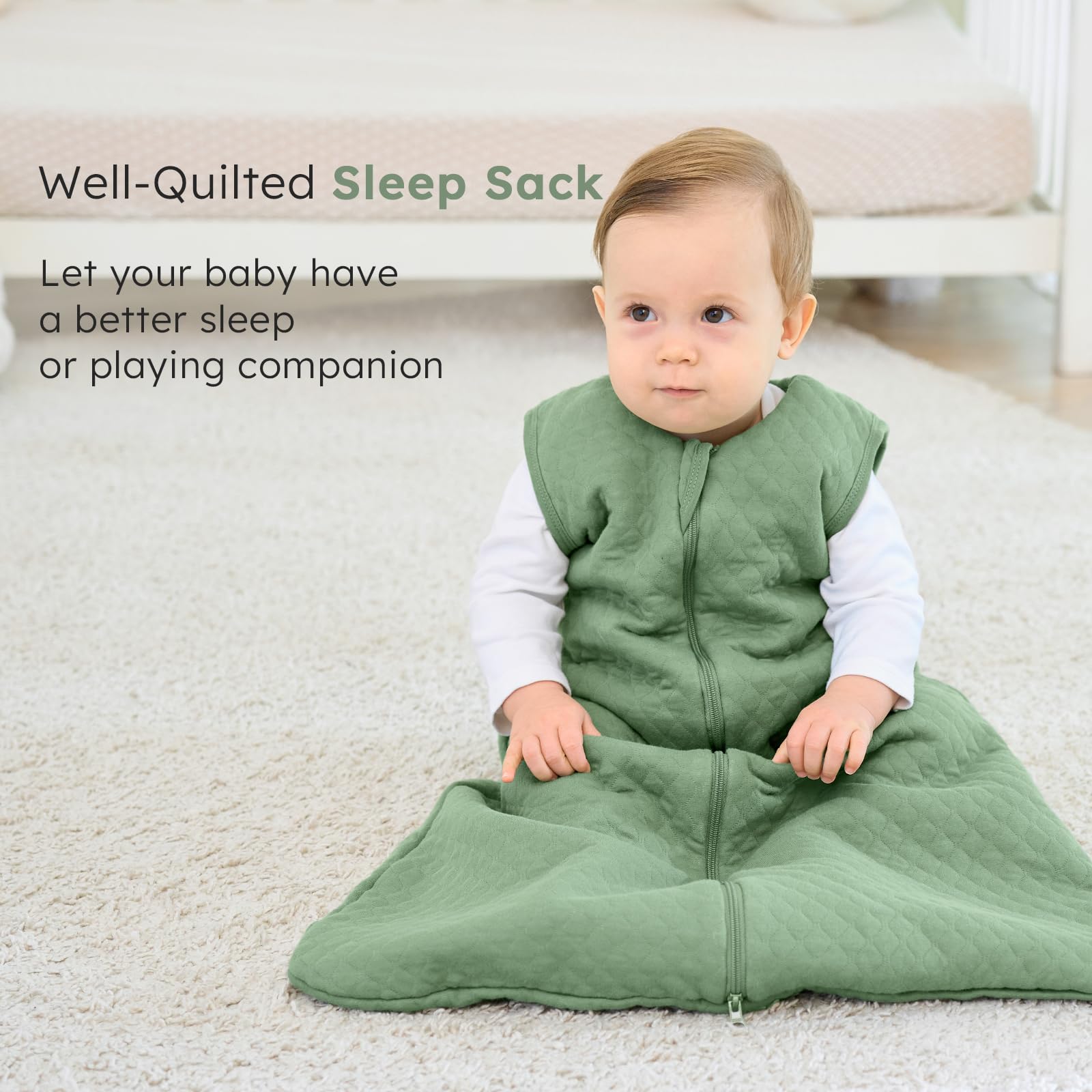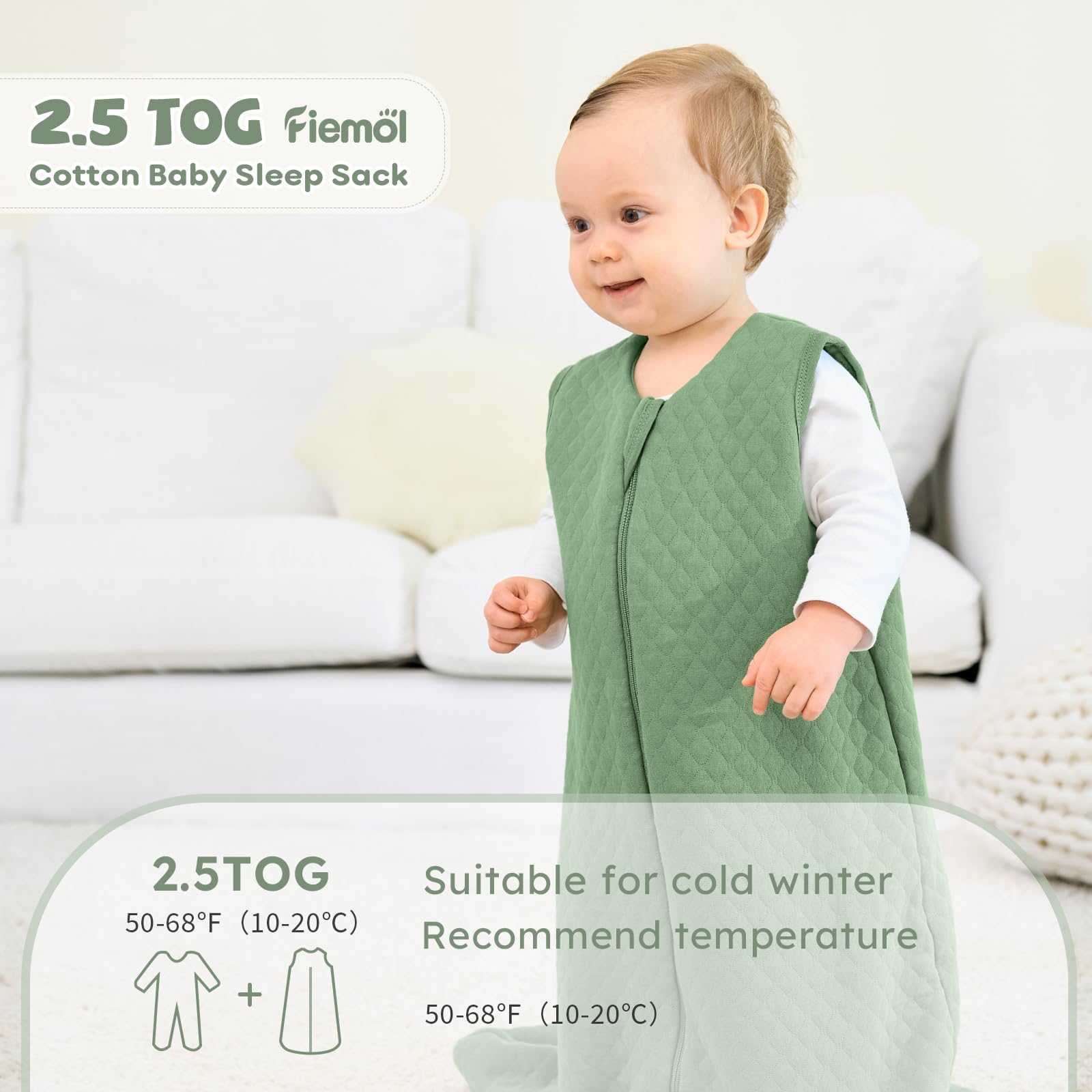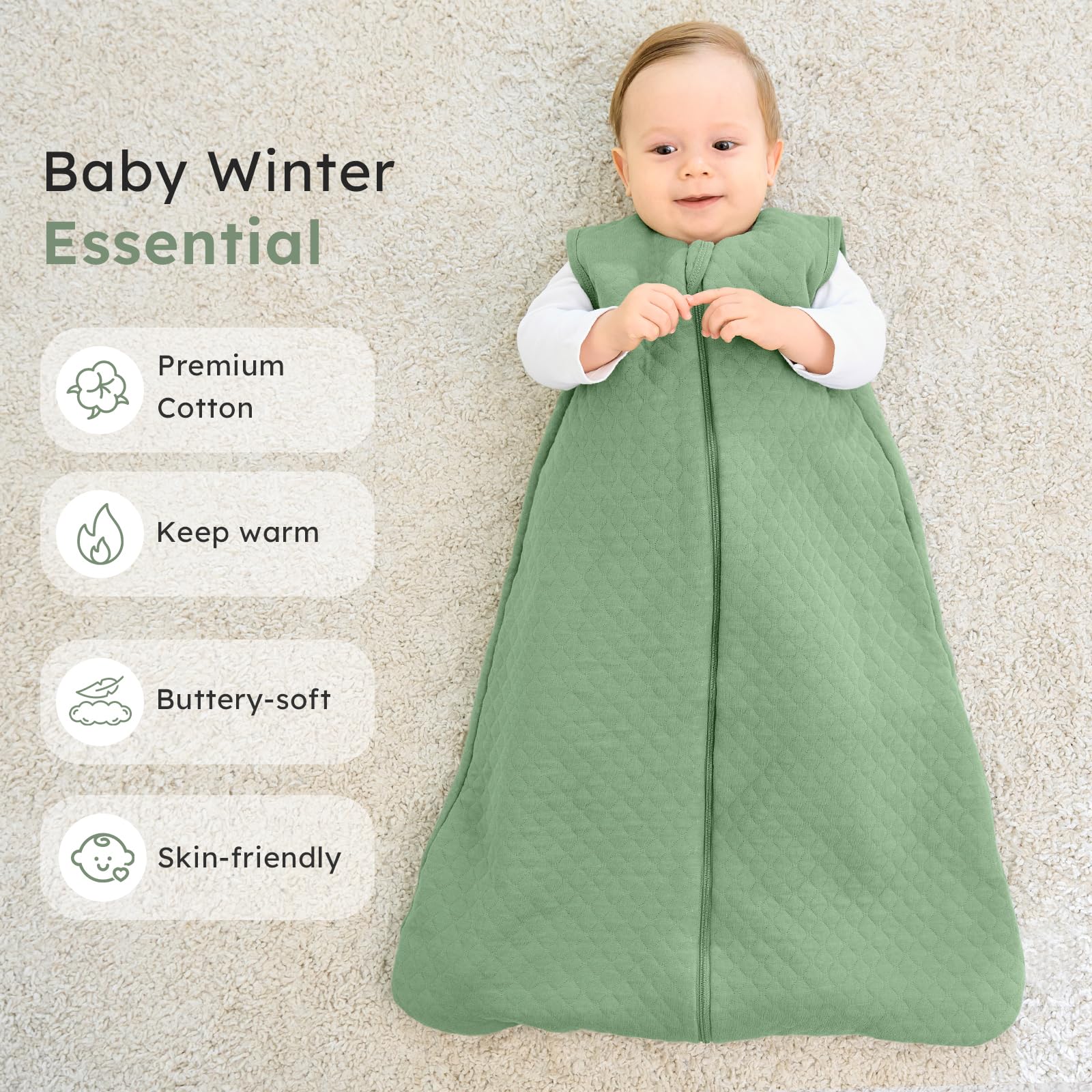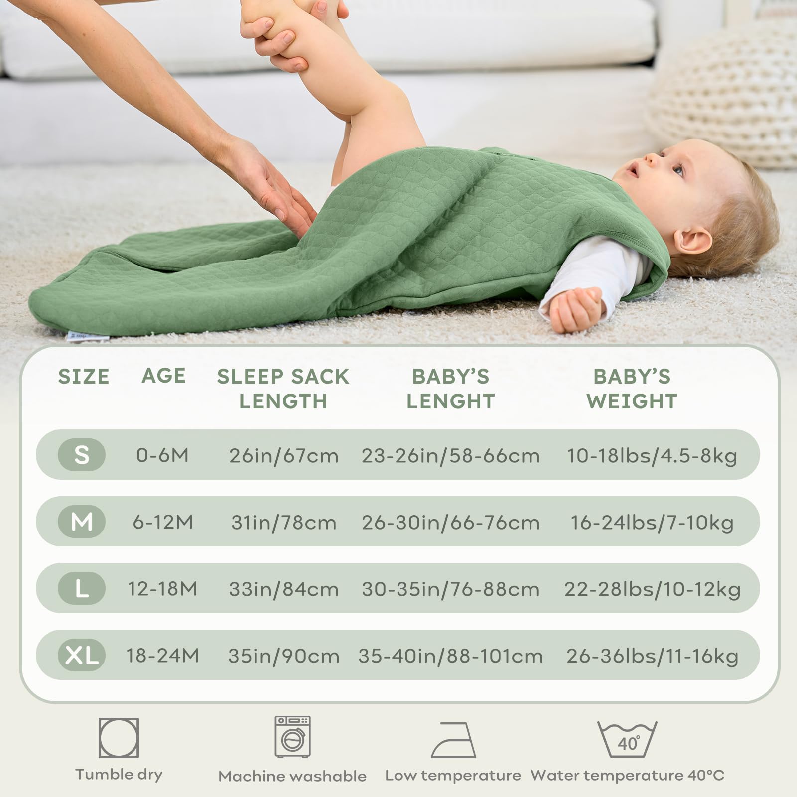 【Warm&Breathable】The 2.5 tog baby sleep sack 0-3 months and 3-6 months is delicately made of 100% cotton at outer layer, which could quite well fit for air flow at every winter night. With its premium cotton inner layer and microfiber filling, your baby would be prioritized by a sleep in mom's arms. A sound sleep for your baby is indispensible for a family.