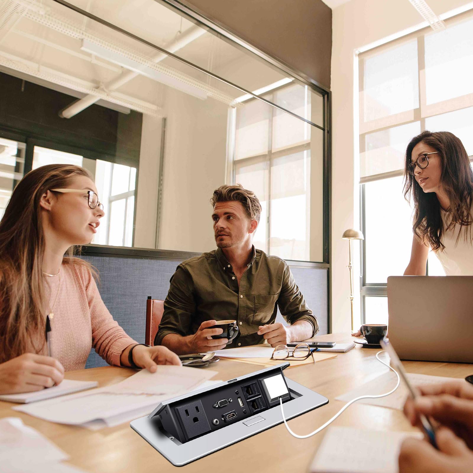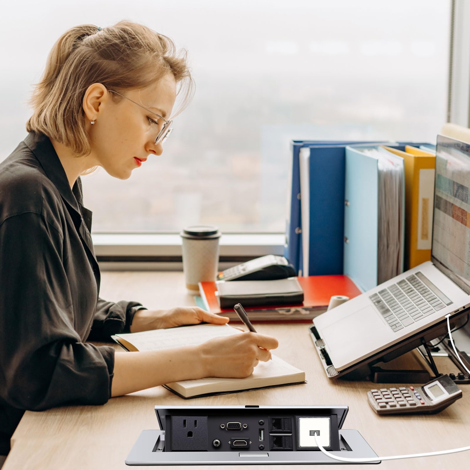 Pop up Outlet - Made of Aluminum alloy panel, engineering PVC fireproof plastic, durable, and aesthetically pleasing, made of fire-resistant engineering plastic, insulated material box, to prevent electric shock - safety guarantee Suitable for indoor home studios, office meeting rooms, study rooms, multimedia classrooms, hotels and other electrical scenarios