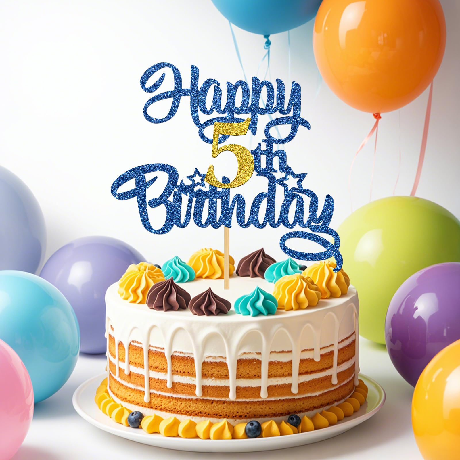 🎐【What You Will Get】One piece blue glittery cake topper, which can bring more fun to your party!