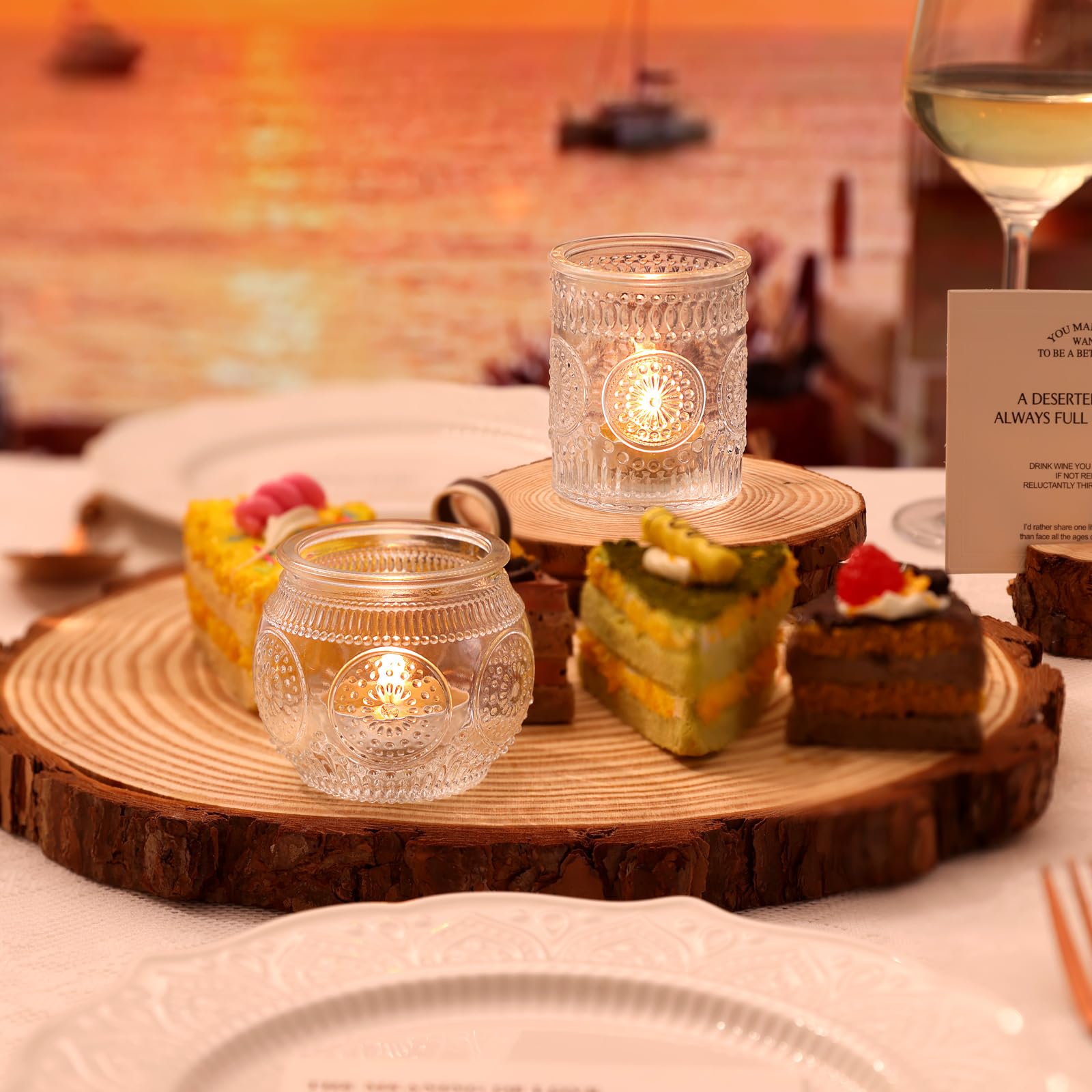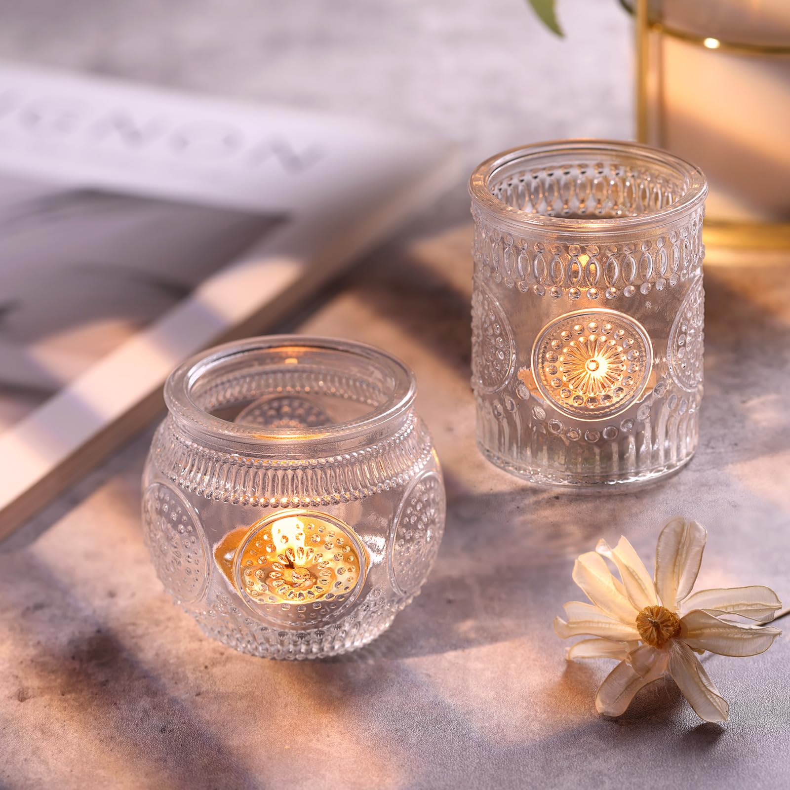 ❤️❤️[ Vintage Sunflower Embossed Style ]❤️❤️: This is the spark collision of retro and simple fashion. The combination of embossing technology and glass makes the votives more nostalgic and textured. At the same time, we chose the sunflower element, which is very cute and exquisite on the basis of vintage. Maybe you want a special and unforgettable party, DARJEN's nice design and well-made tea lights candle holder will be a necessity for your party centerpieces.
