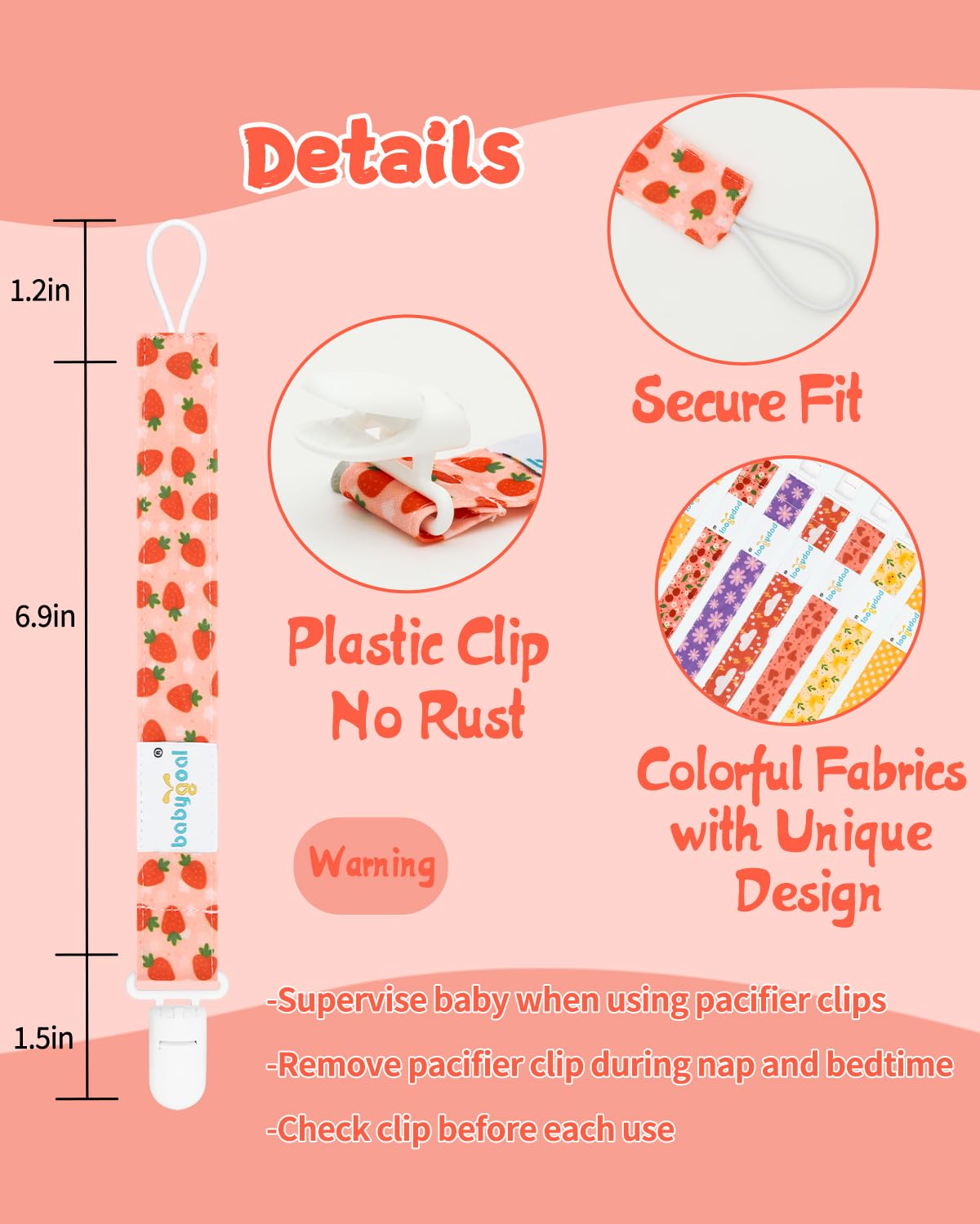 Customer Satisfaction Guaranteed: Customer satisfaction is our first priority. Babygoal provide one-year guarantee for our pacifier clips.