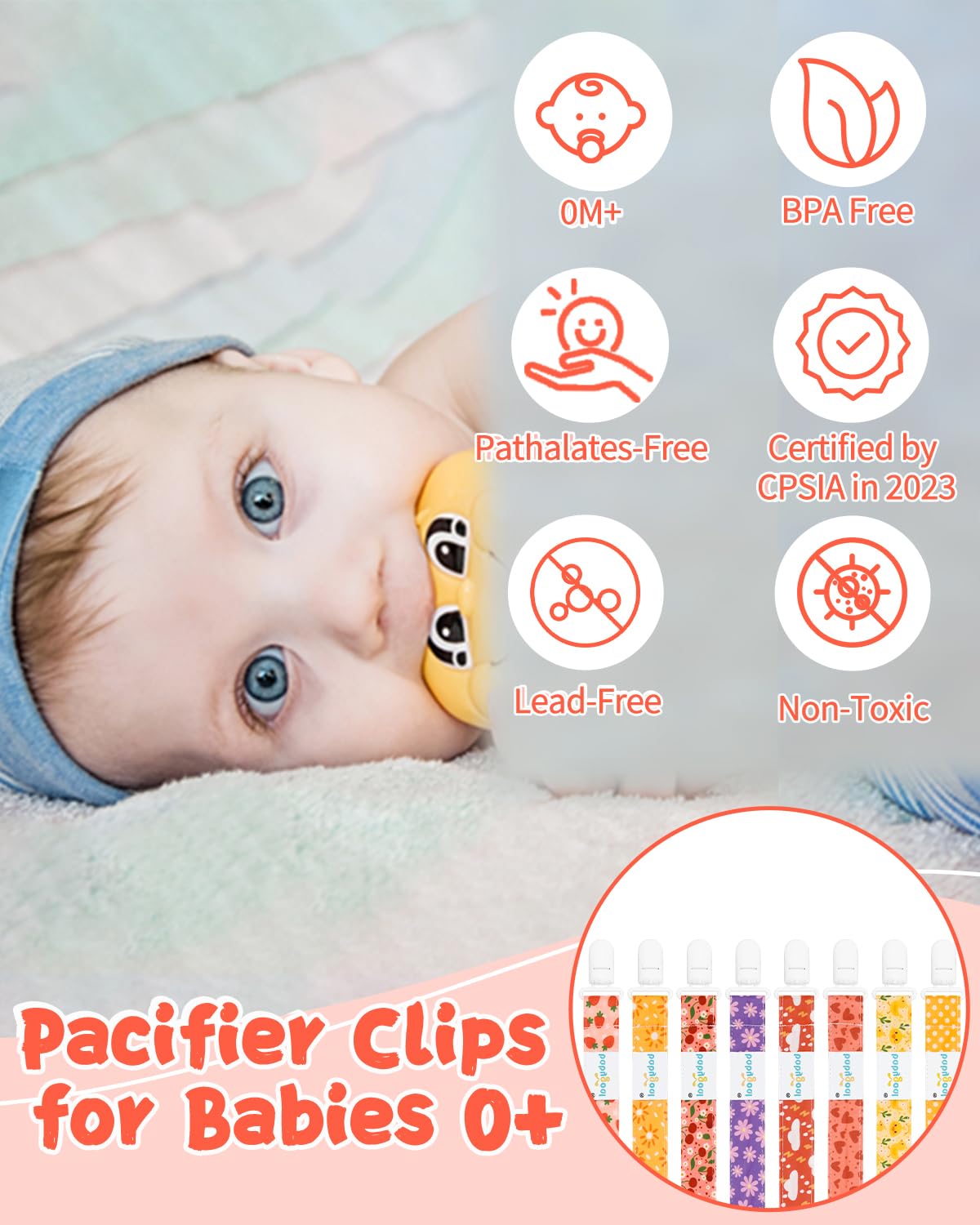 Safety: The stylish pacifier leashes are made of polyester fabric, and they are washable, durable and soft. All-in-one clips with plastic teeth are safe and not easily get broken. They are BPA Free, Phthalate Free, Latex Free, Lead Free, suitable for all ages.